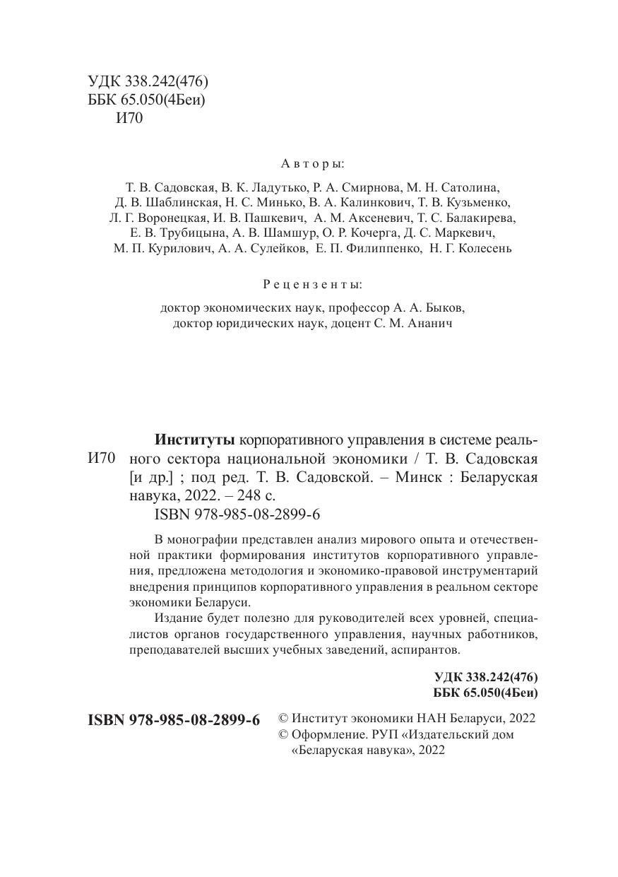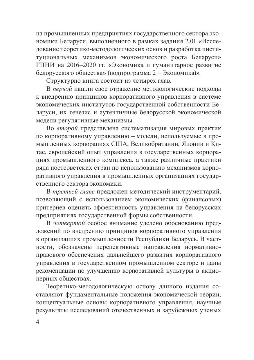 В монографии представлен анализ мирового опыта и отечественной практики формирования институтов корпоративного управления, предложена методология и экономико-правовой инструментарий внедрения принципов корпоративного управления в реальном секторе экономики Беларуси. Издание будет полезно для руководителей всех уровней, специалистов органов государственного управления, научных работников, преподавателей высших учебных заведений, аспирантов.