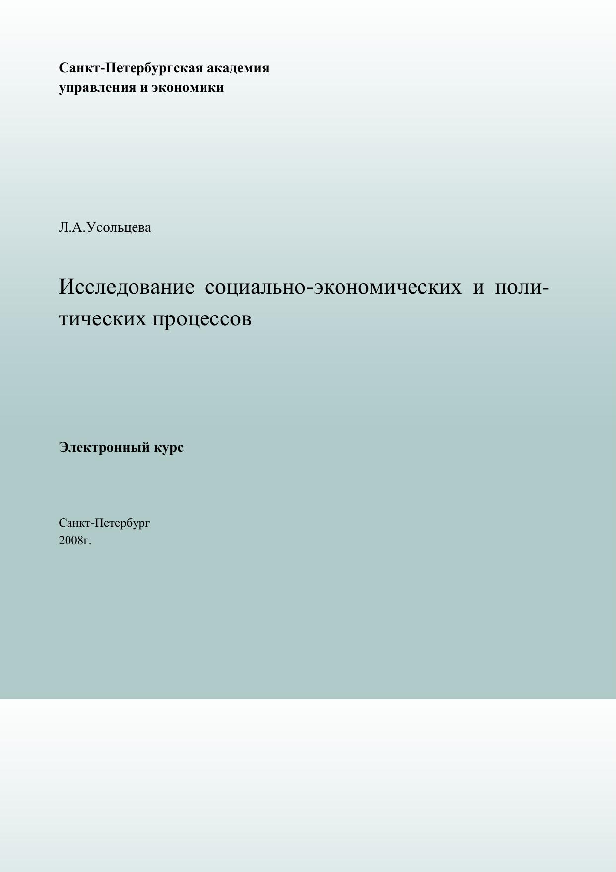 Исследование социально-экономических и политических процессов: Электронное учебное пособие