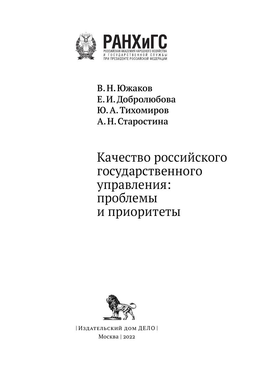 Качество российского государственного управления: проблемы и приоритеты