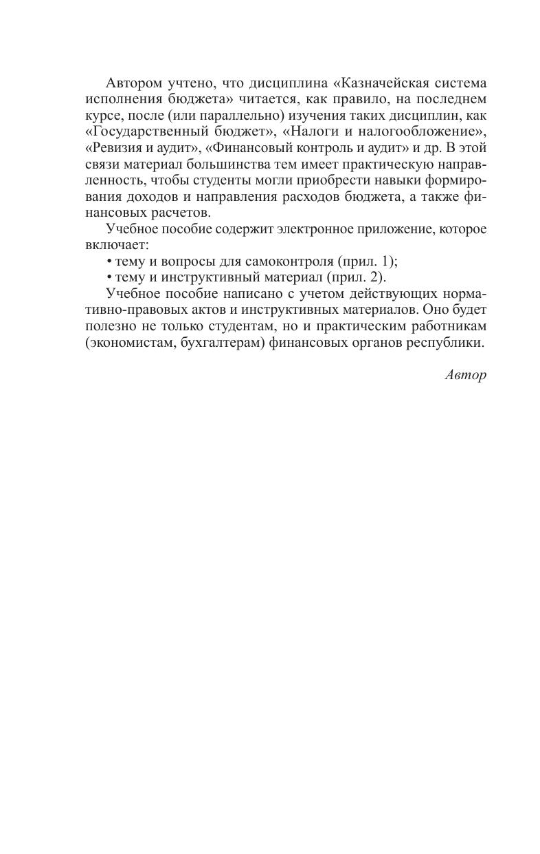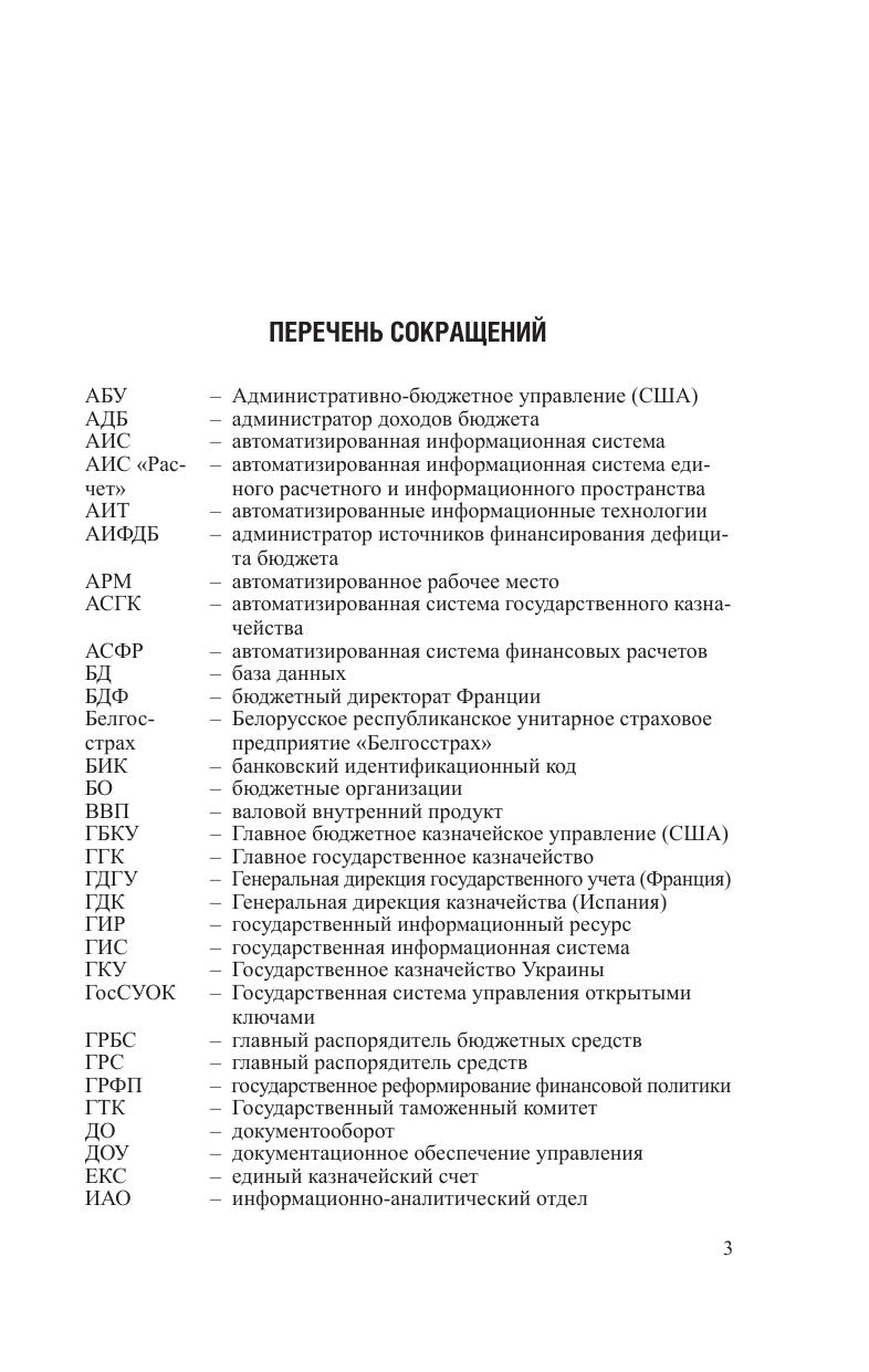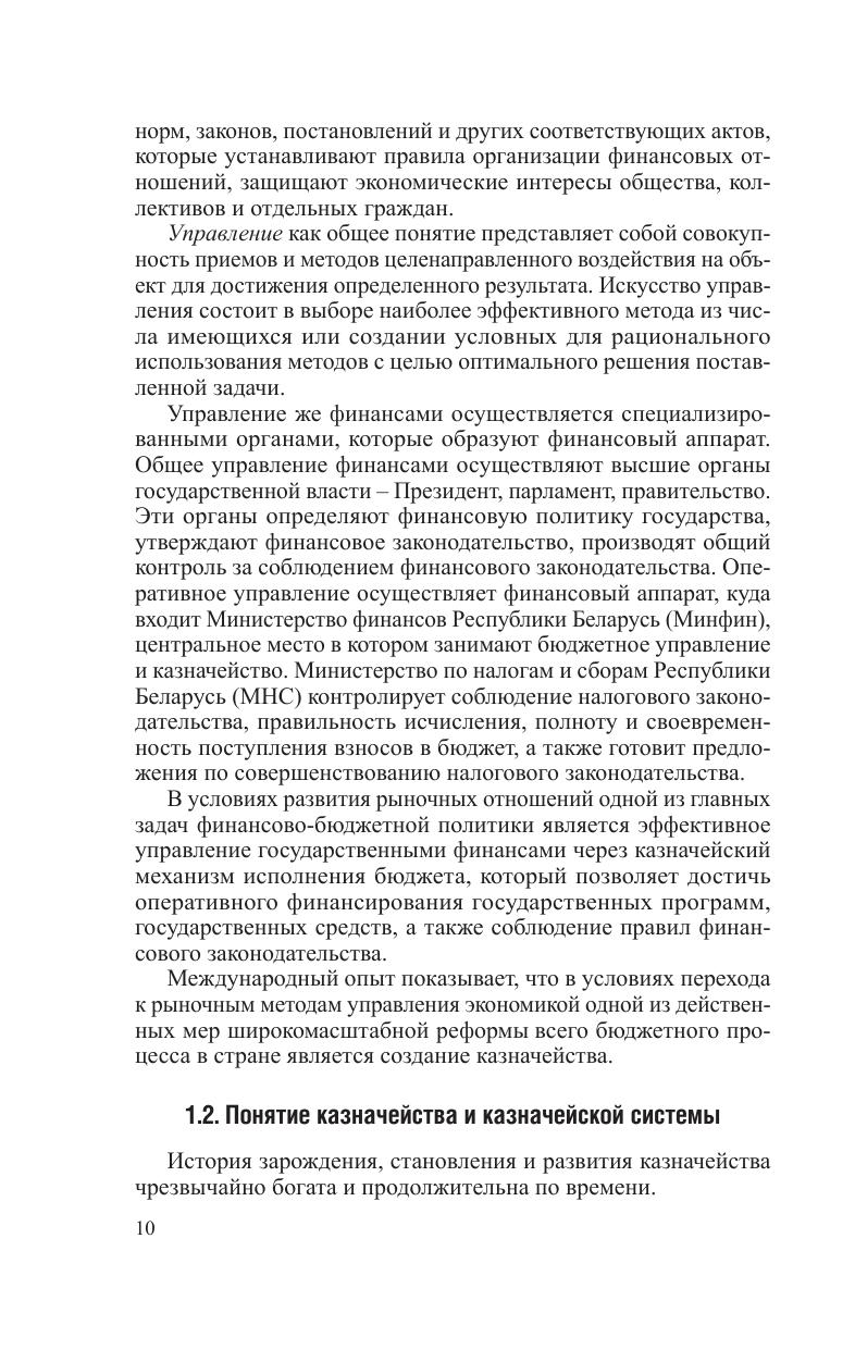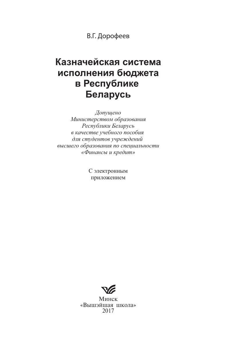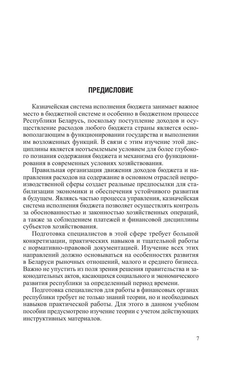 Рассматриваются казначейское исполнение республиканского бюджета и местных бюджетов по доходам и расходам, бухгалтерские учет и отчетность, организация проведения казначейского контроля, автоматизированная система и электронный документооборот в казначейских органах Республики Беларусь.