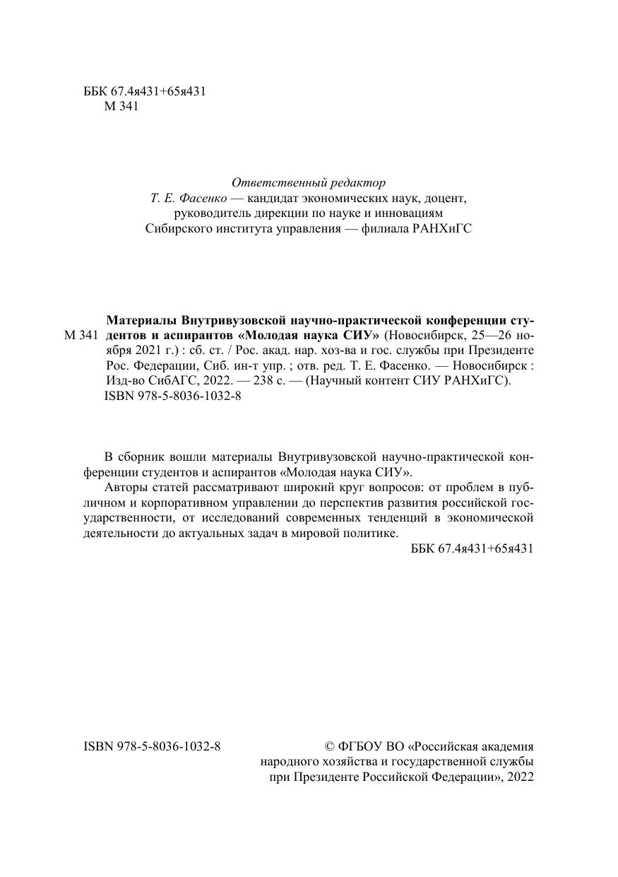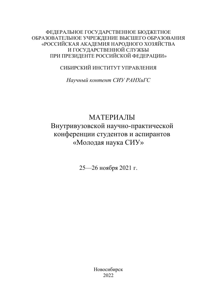 Материалы Внутривузовской научно-практической конференции студентов и аспирантов «Молодая наука СИУ» (Новосибирск, 25—26 но-ября 2021 г.): сборник статей