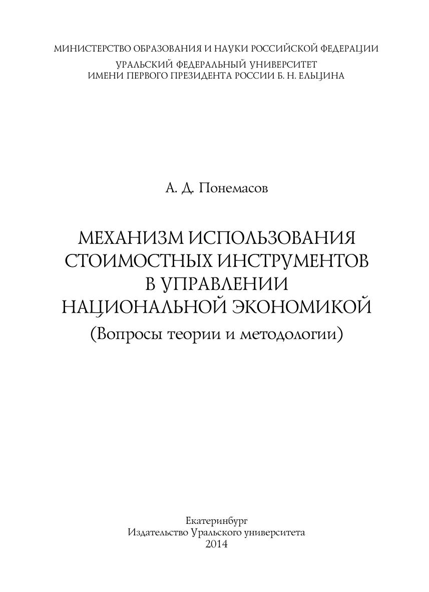 Механизм использования стоимостных инструментов в управлении национальной экономикой (вопросы теории и методологии): монография