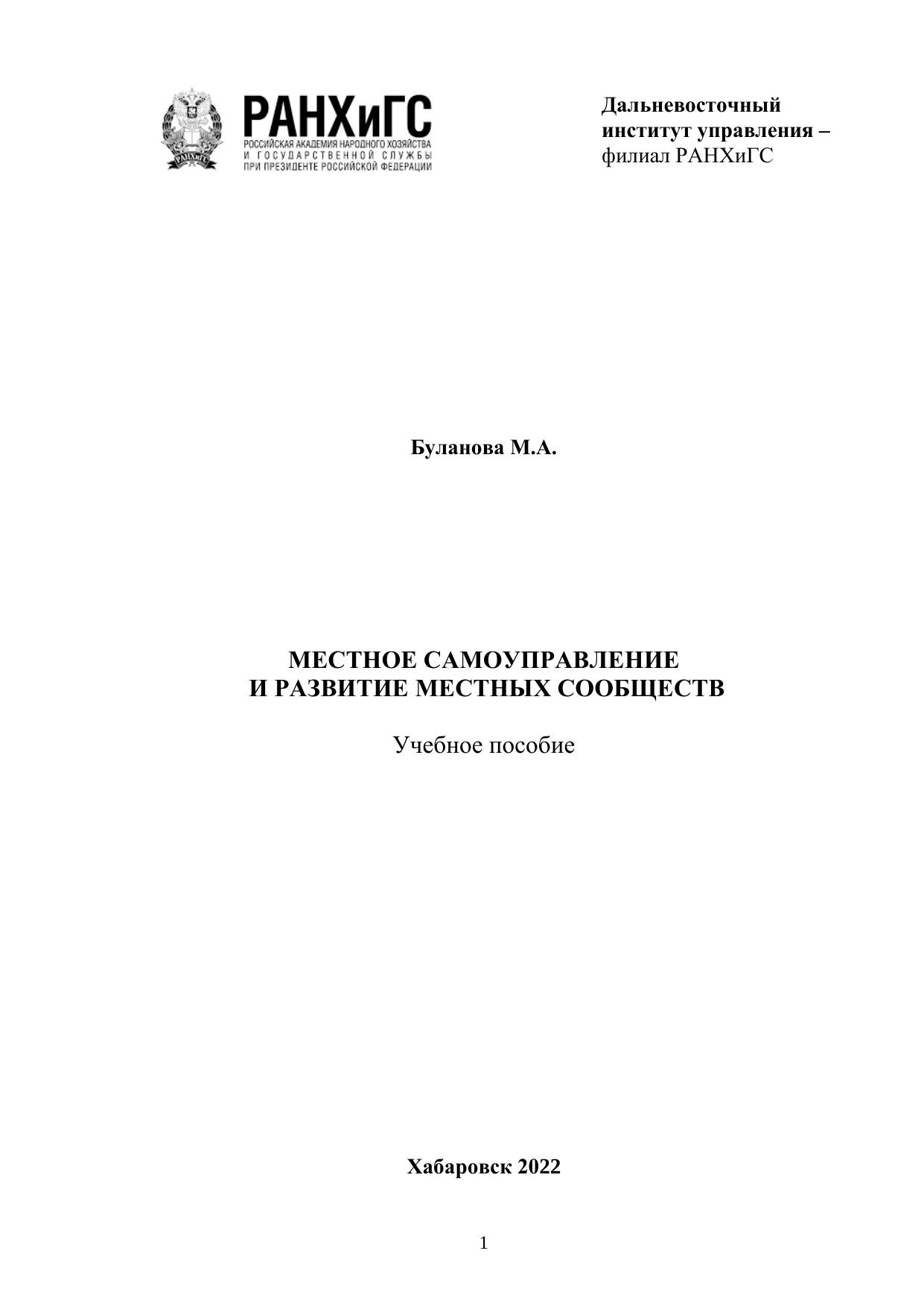 Учебное пособие даёт системное представление о взаимодействии органов местного самоуправления с населением, о современном состоянии и особенностях развития местного самоуправления и местных сообществ в Российской Федерации. Учебное пособие может быть рекомендовано обучающимся по направлению подготовки 38.03.04 «Государственное и муниципальное управление», магистрам по направлению 38.04.04 «Государственное и муниципальное управление», а также обучающимся, имеющим в своих учебных курсах дисциплины, касающиеся вопросов местного самоуправления, территориального общественного самоуправления, особенности развития местного сообщества.
