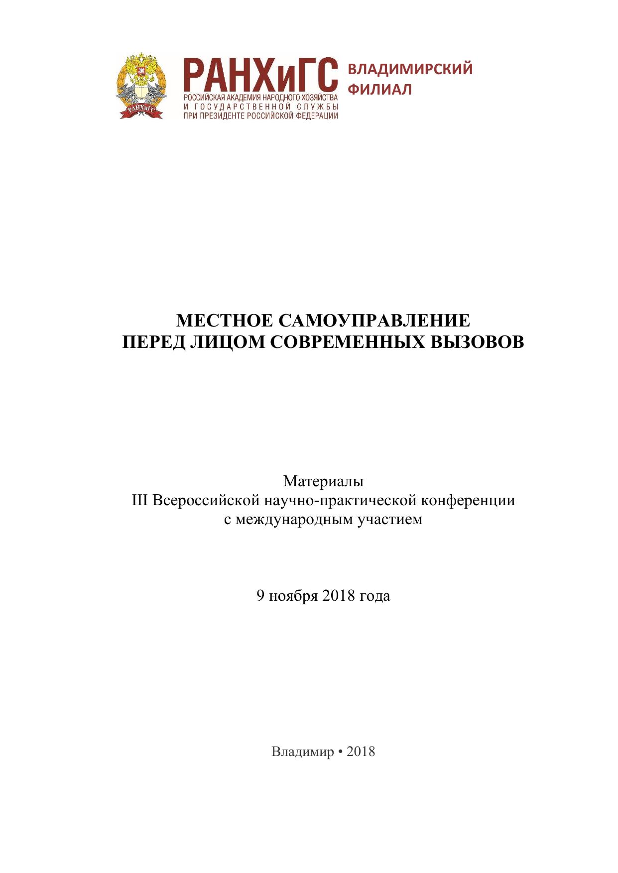 Местное самоуправление перед лицом современных вызовов: материалы III Всероссийской научно-практической конференции с международным участием 9 ноября 2018 года