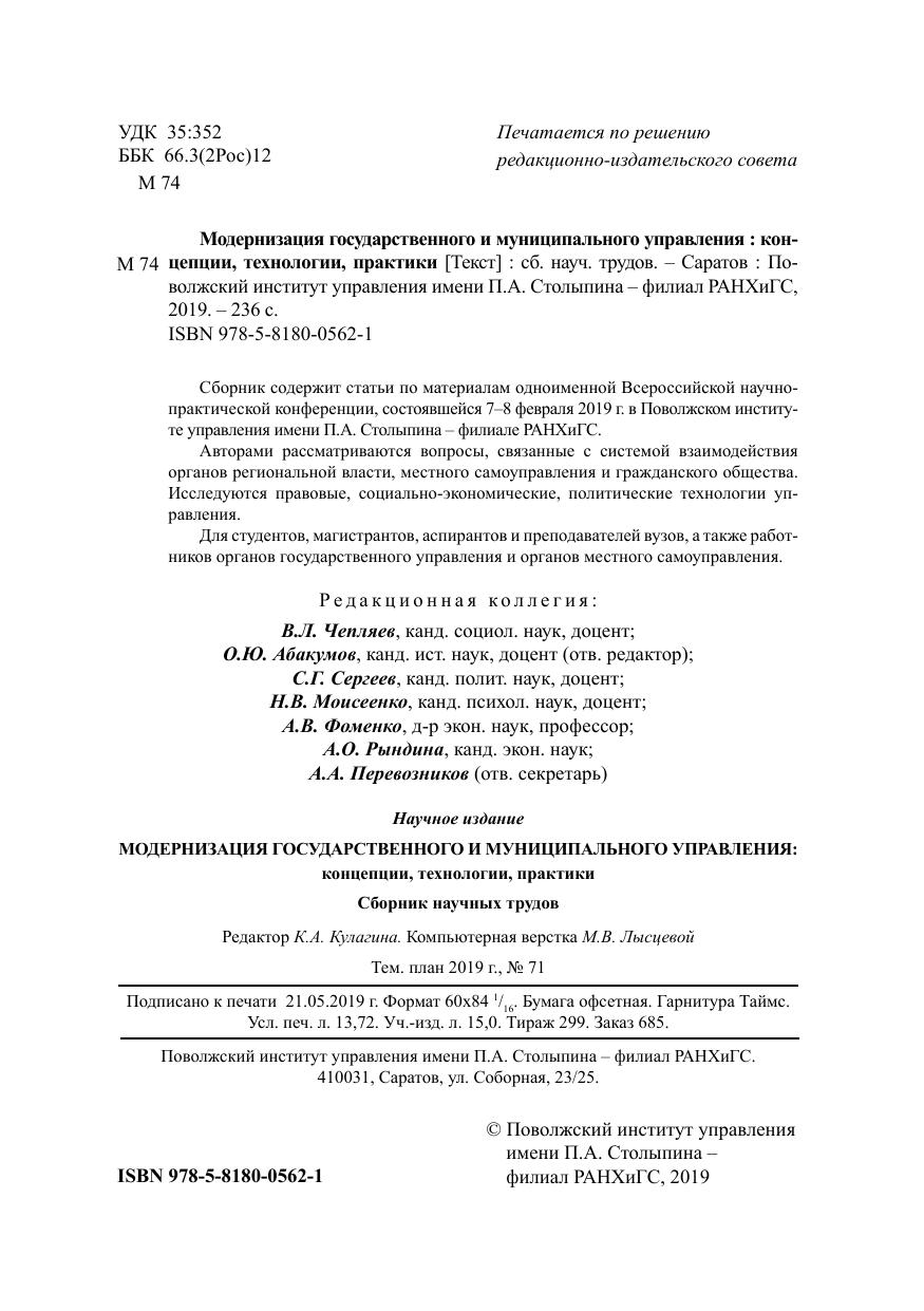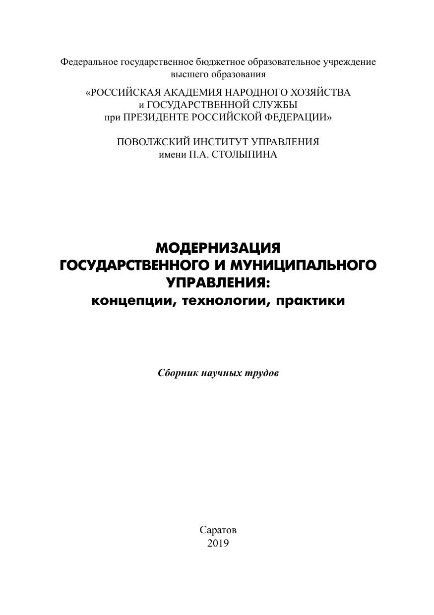 Модернизация государственного и муниципального управления: концепции, технологии, практики: сборник научных трудов