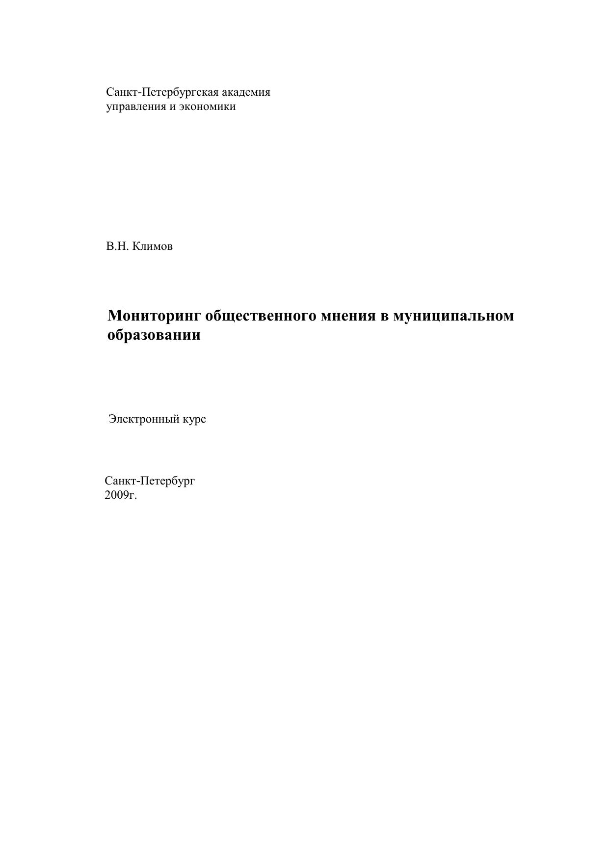 Мониторинг общественного мнения в муниципальном образовании: Электронное учебное пособие