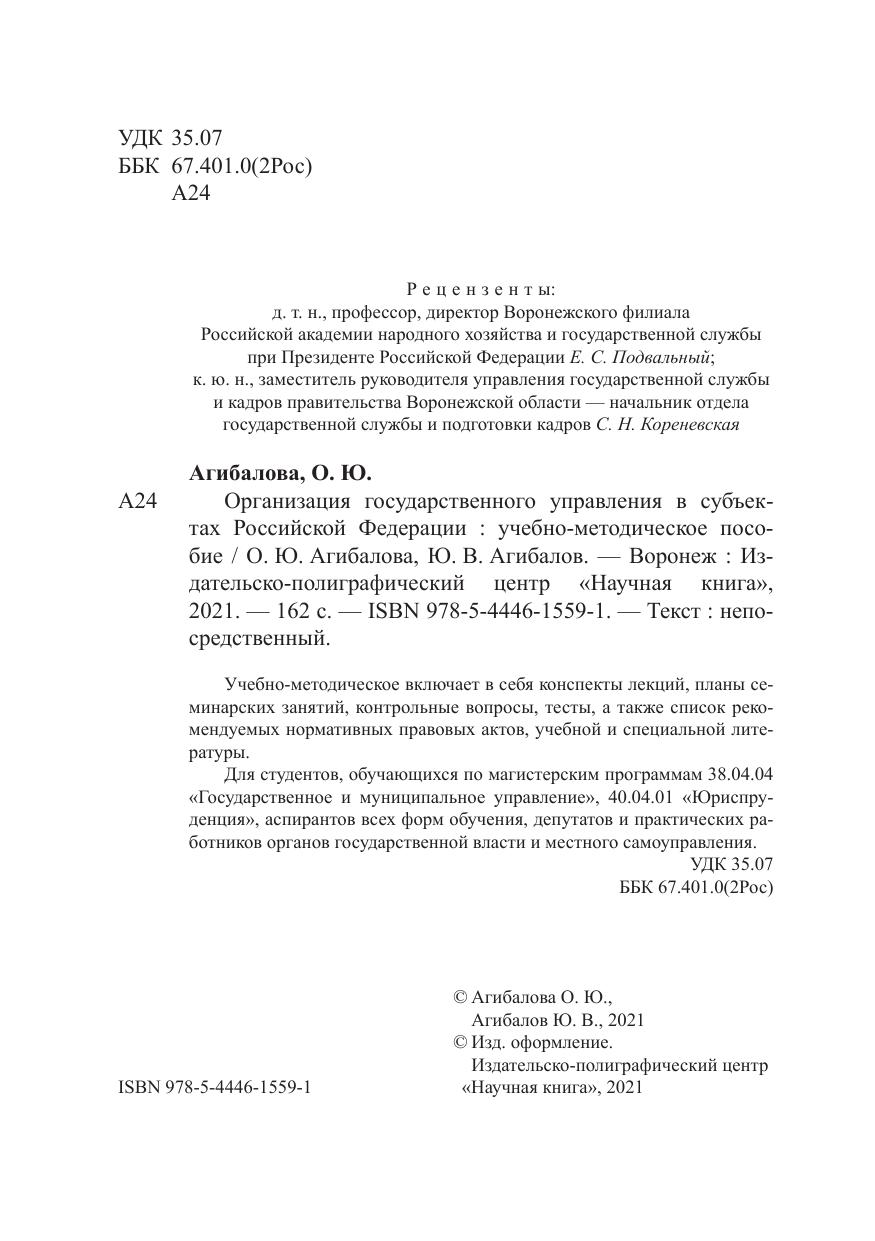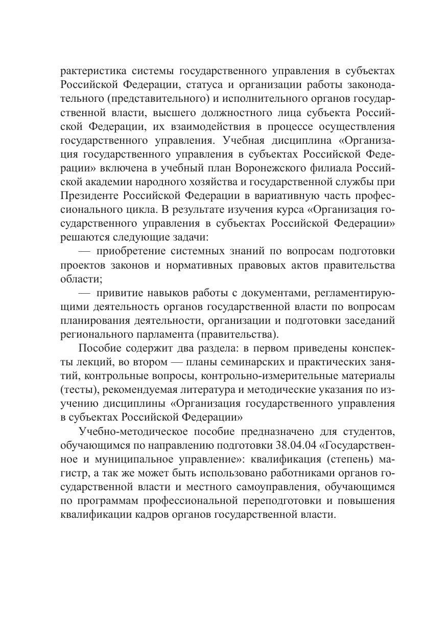 Учебно-методическое включает в себя конспекты лекций, планы семинарских занятий, контрольные вопросы, тесты, а также список рекомендуемых нормативных правовых актов, учебной и специальной литературы. Для студентов, обучающихся по магистерским программам 38.04.04 «Государственное и муниципальное управление», 40.04.01 «Юриспруденция», аспирантов всех форм обучения, депутатов и практических работников органов государственной власти и местного самоуправления.