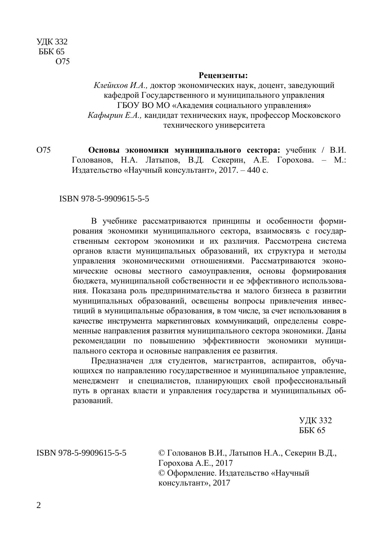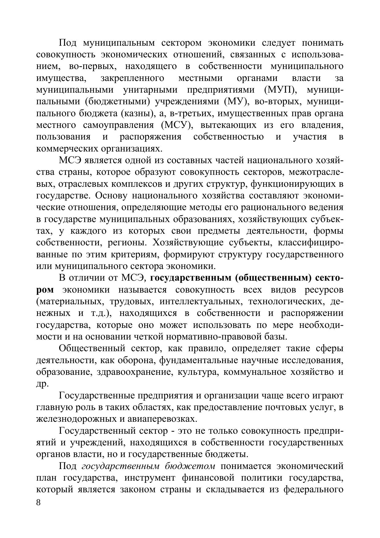 В учебнике рассматриваются принципы и особенности формирования экономики муниципального сектора, взаимосвязь с государственным сектором экономики и их различия. Рассмотрена система органов власти муниципальных образований, их структура и методы управления экономическими отношениями. Рассматриваются экономические основы местного самоуправления, основы формирования бюджета, муниципальной собственности и ее эффективного использования. Показана роль предпринимательства и малого бизнеса в развитии муниципальных образований, освещены вопросы привлечения инвестиций в муниципальные образования, в том числе, за счет использования в качестве инструмента маркетинговых коммуникаций, определены современные направления развития муниципального сектора экономики. Даны рекомендации по повышению эффективности экономики муниципального сектора и основные направления ее развития.