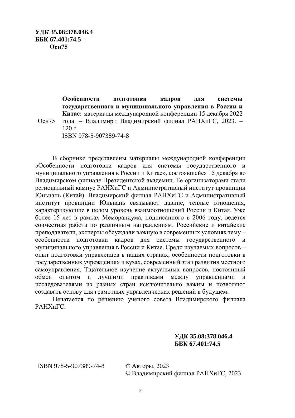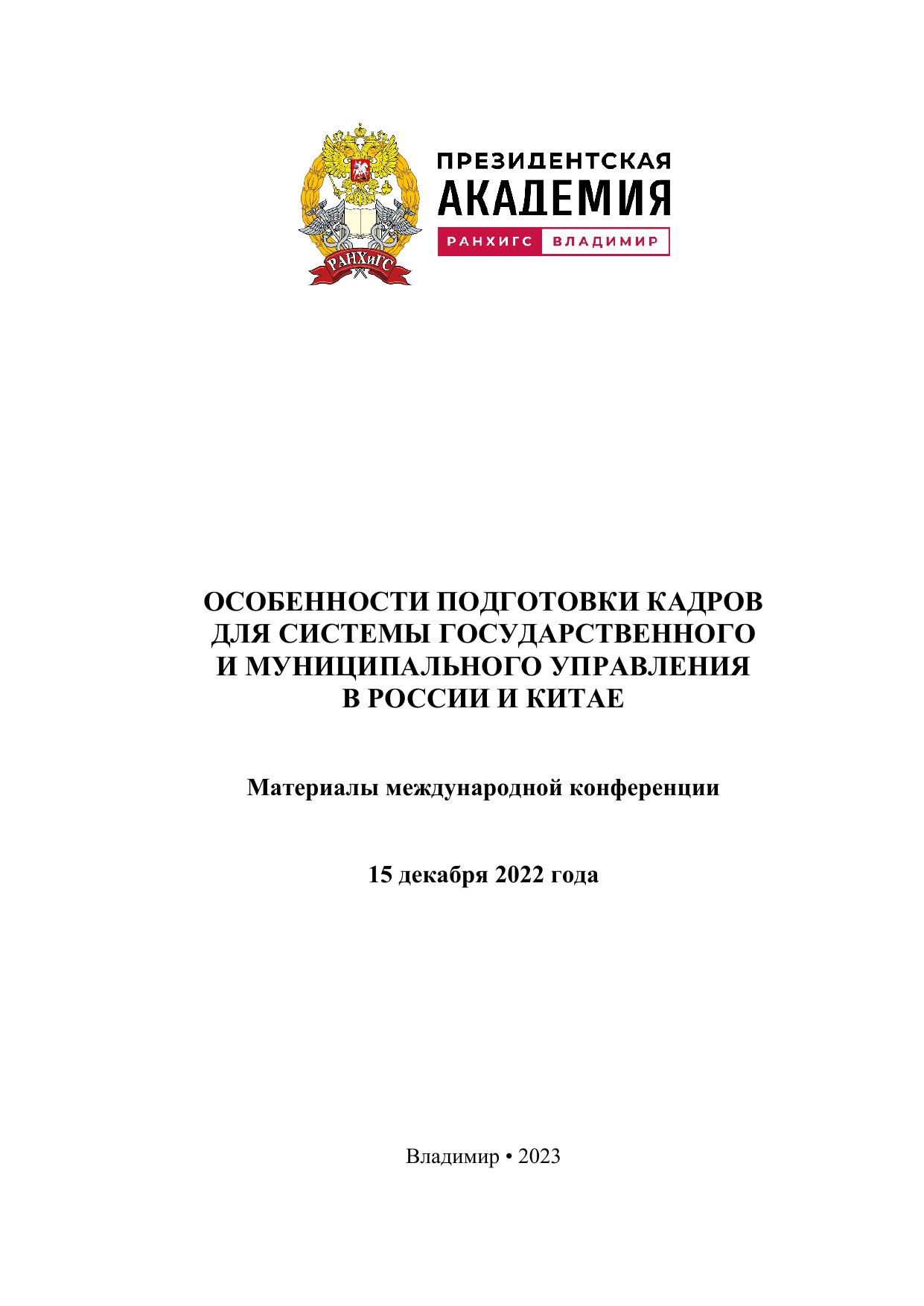 Особенности подготовки кадров для системы государственного и муниципального управления в России и Китае: материалы международной конференции 15 декабря 2022 года
