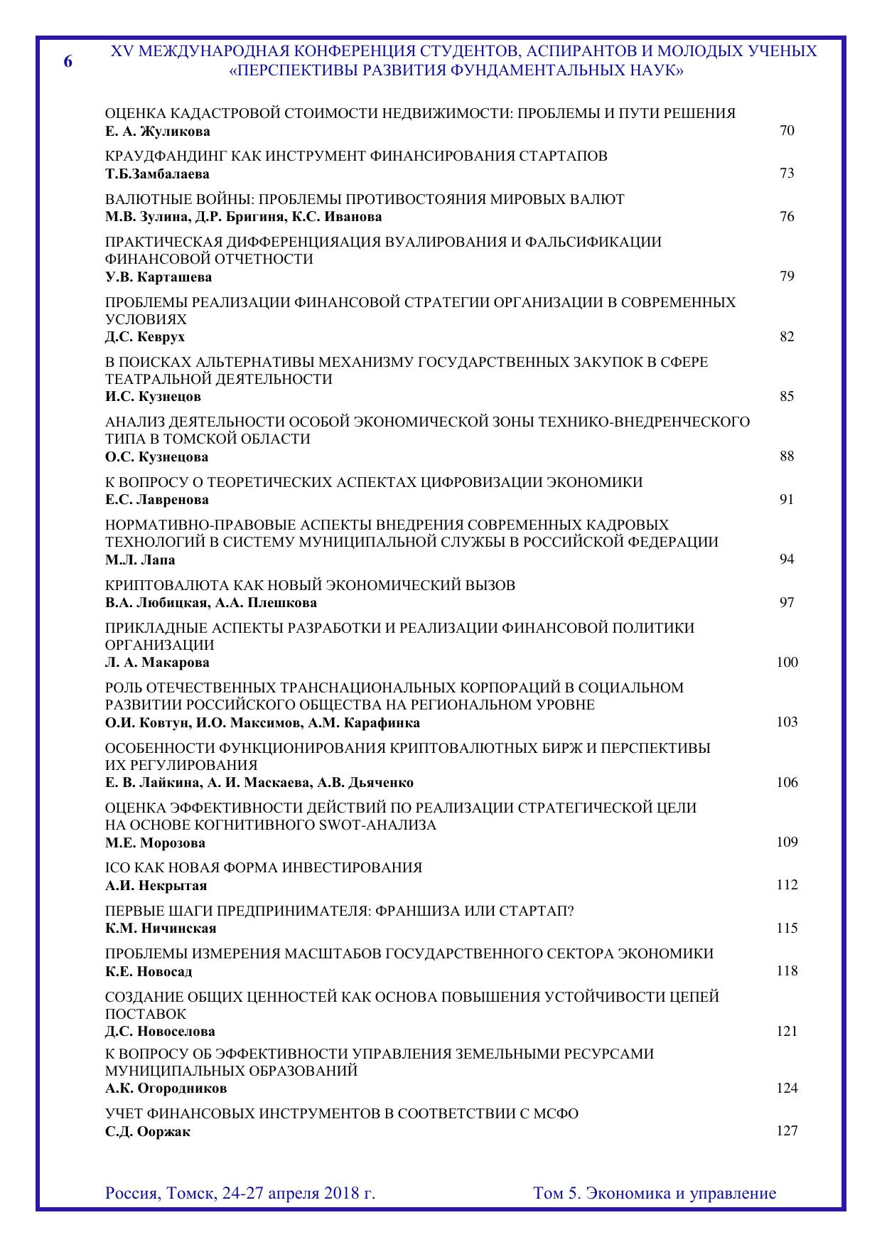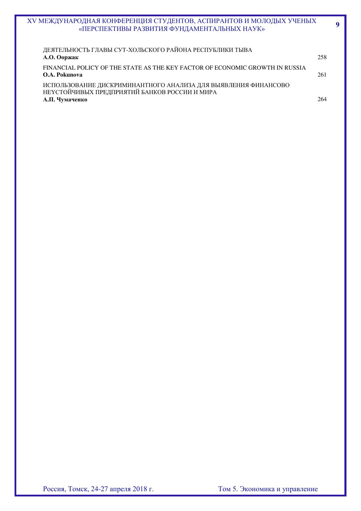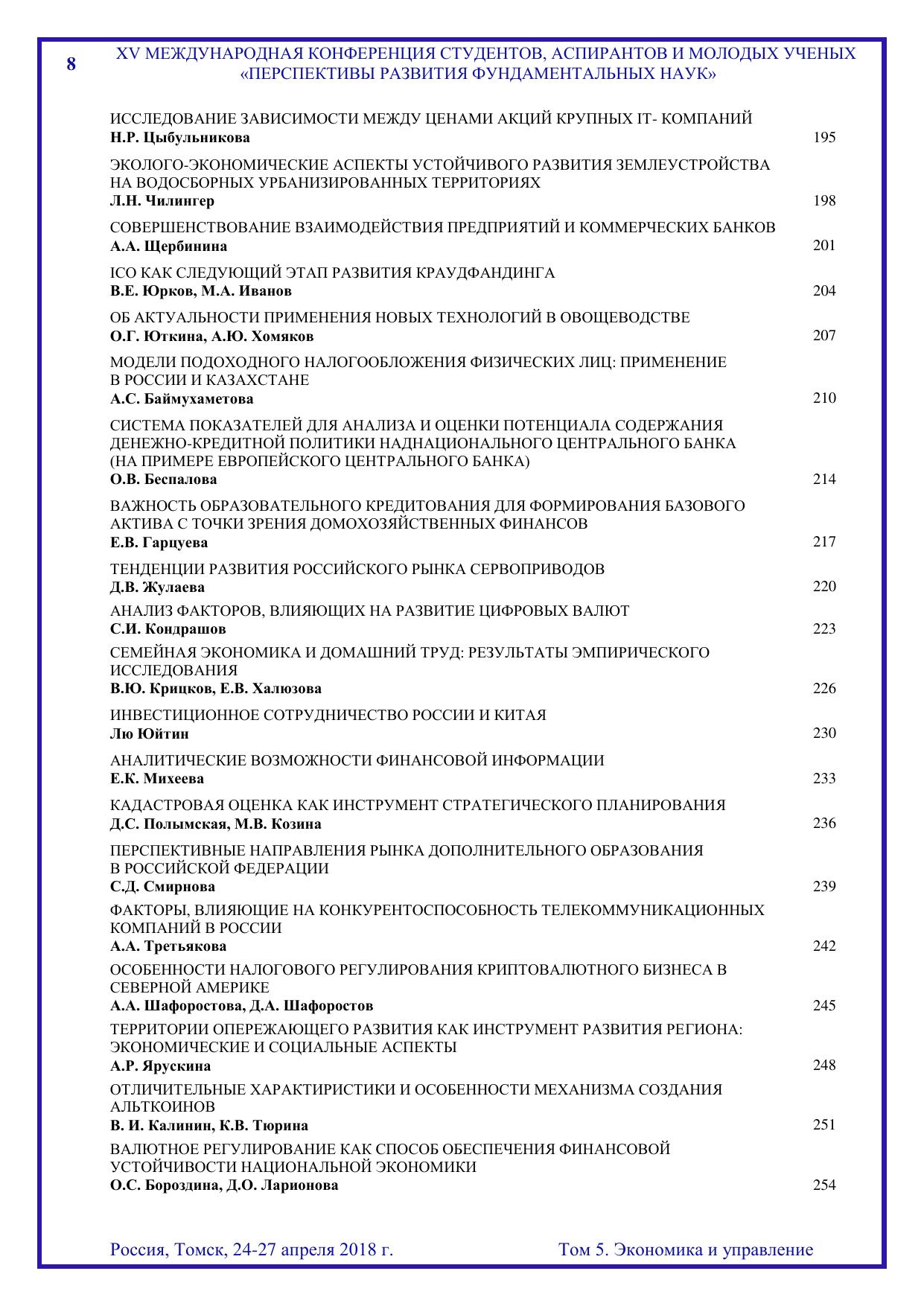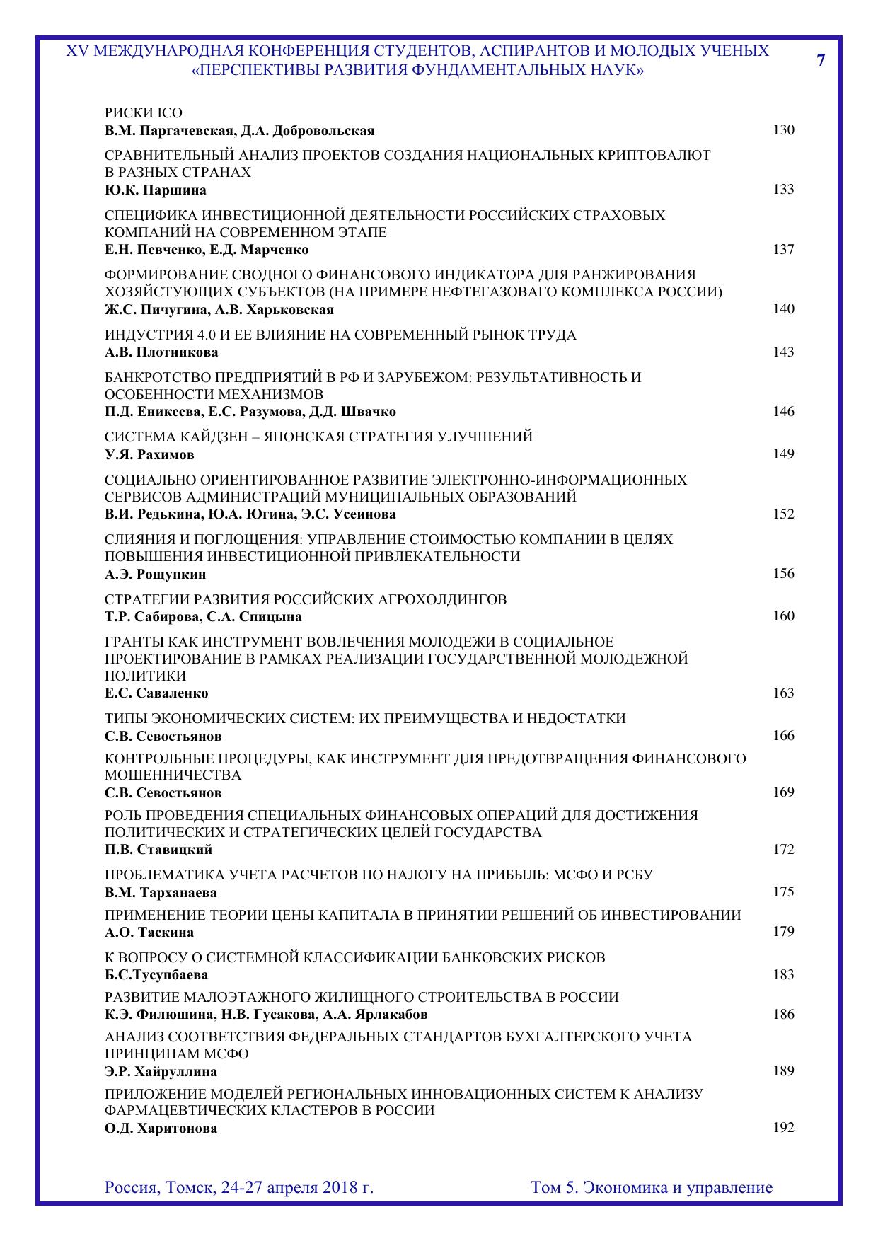 Сборник содержит труды участников XV Международной конференции студентов, аспирантов и молодых учёных «Перспективы развития фундаментальных наук», представленные на секции «Экономика и управление». Для студентов, аспирантов, молодых ученых и преподавателей, специализирующихся в области цифровой экономики, институциональной и отраслевой экономики, инновационной политики и предпринимательства, налоговой политики и регулирования, финансов, денежного обращения и кредита, учёта, анализа и аудита, статистики, менеджмента, экономики труда, математических методов и информационных технологий в экономике, менеджменте и бизнесе, развития системы государственного муниципального управления, междисциплинарного исследования в экономике, а также международных экономических отношений.