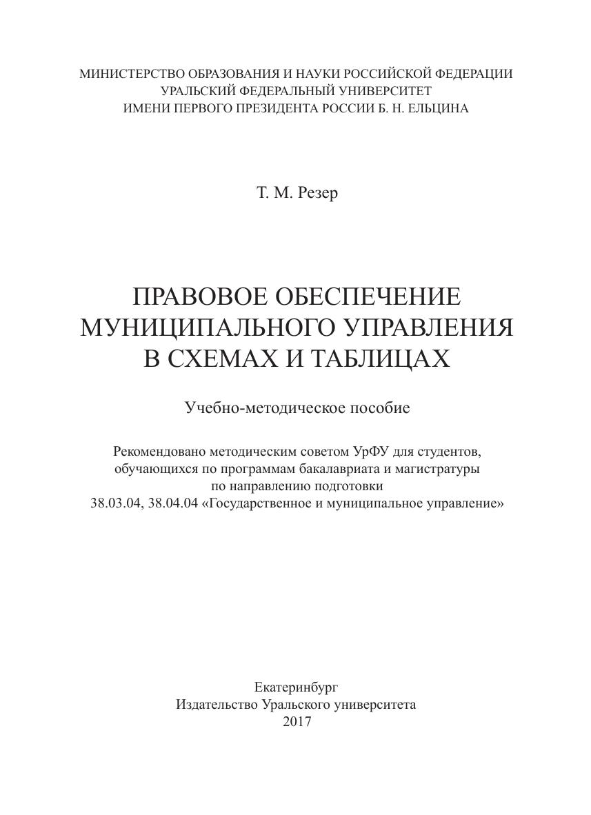Правовое обеспечение муниципального управления в схемах и таблицах