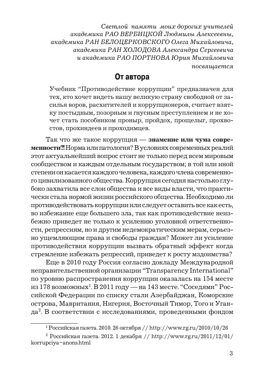 Пятое издание учебника «Противодействие коррупции» посвящено основам антикоррупционного образования и адаптации дисциплины «Противодействие коррупции» к различным уровням и формам образования. В нем излагается система базовых знаний, обязательных для усвоения и предназначенных для реализации государственной антикоррупционной политики по коренному перелому общественного сознания, формирования идеологии и атмосферы жесткого неприятия коррупции в гражданском обществе. Учебник ориентирует на глубокое изучение антикоррупционной деятельности, а также на активизацию антикоррупционного просвещения. На его страницах представлен объёмный перечень терминов, суждений и понятий, применяемых в научной, методологической и методической литературе по проблемам антикоррупционного образования, а также свод основных антикоррупционных российских законодательных актов. Для студентов, обучающихся по направлениям подготовки «Государственное и муниципальное управление» и «Экономика», а также слушателей системы повышения квалификации кадров, сотрудников правоохранительных и правоприменительных органов, депутатов всех уровней, государственных и муниципальных служащих, а также всех, кто интересуется вопросами противодействия международной коррупции.