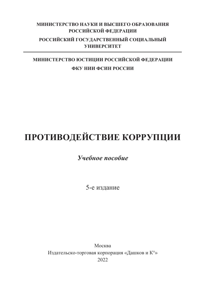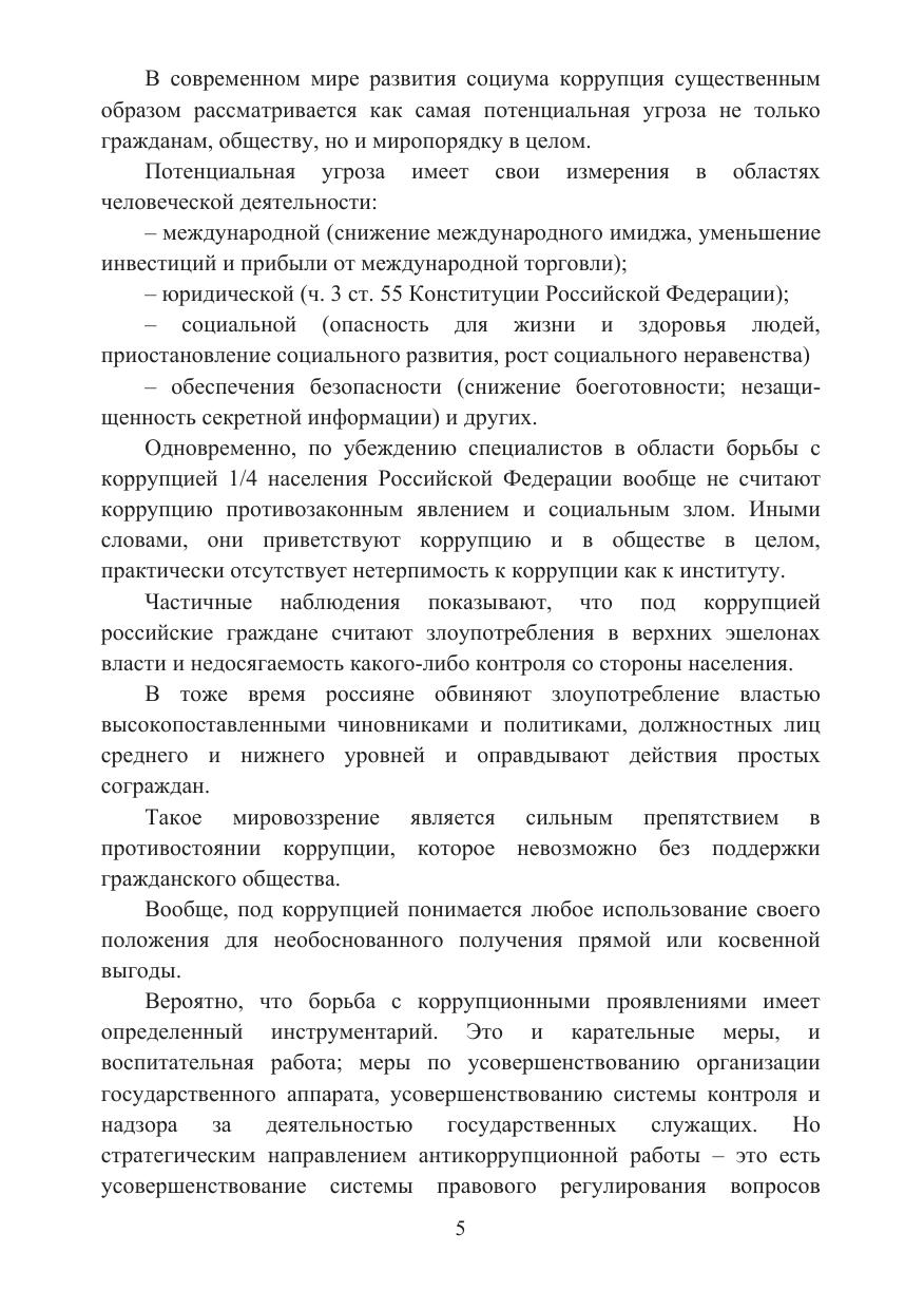 В учебном пособии раскрывается сущность государственной антикоррупционной политики, характеризуются правовое регулирование и система государственных органов в сфере противодействия коррупции, рассматриваются процессуальные аспекты привлечения к ответственности за совершение коррупционных преступлений, освещается зарубежный опыт в борьбе с коррупцией. Особое внимание уделено перспективам развития отечественного законодательства и роли гражданского общества в противодействии коррупции. Для студентов вузов, преподавателей юридических дисциплин, а также научных работников и аспирантов.