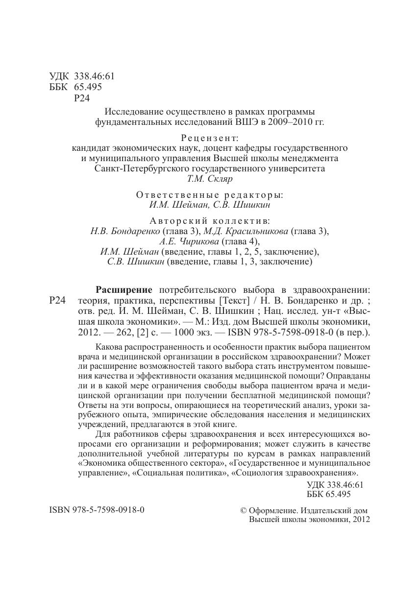 Какова распространенность и особенности практик выбора пациентом врача и медицинской организации в российском здравоохранении? Может ли расширение возможностей такого выбора стать инструментом повышения качества и эффективности оказания медицинской помощи? Оправданы ли и в какой мере ограничения свободы выбора пациентом врача и медицинской организации при получении бесплатной медицинской помощи? Ответы на эти вопросы, опирающиеся на теоретический анализ, уроки зарубежного опыта, эмпирические обследования населения и медицинских учреждений, предлагаются в этой книге. Для работников сферы здравоохранения и всех интересующихся вопросами его организации и реформирования; может служить в качестве дополнительной учебной литературы по курсам в рамках направлений «Экономика общественного сектора», «Государственное и муниципальное управление», «Социальная политика», «Социология здравоохранения».