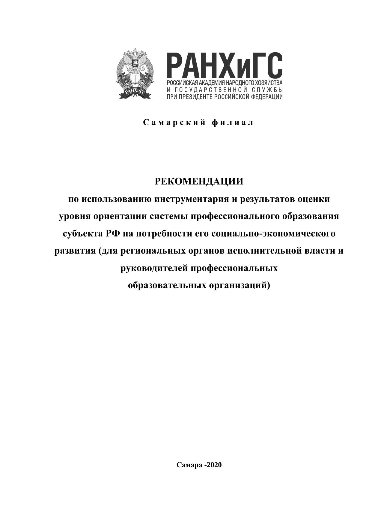 Рекомендации по использованию инструментария и результатов оценки уровня ориентации системы профессионального образования субъекта РФ на потребности его социально-экономического развития (для региональных органов исполнительной власти и руководителей профессиональных образовательных организаций)