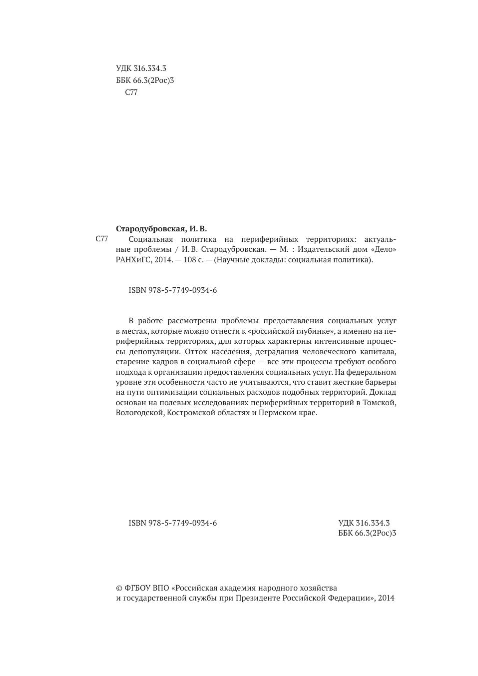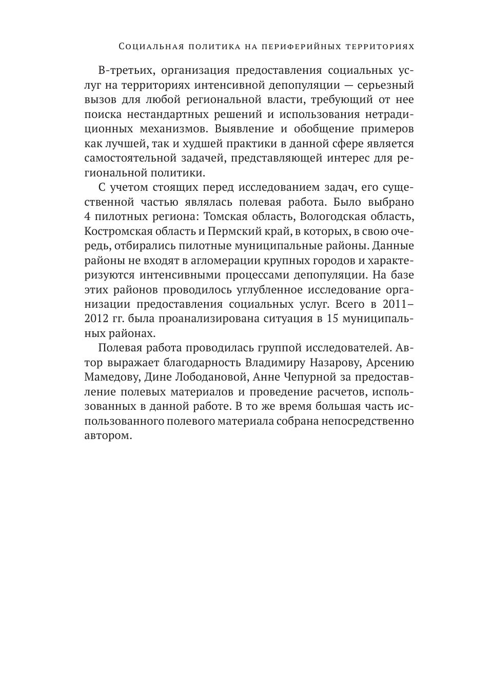 Серия Научные доклады. В работе рассмотрены проблемы предоставления социальных услуг в местах, которые можно отнести к «российской глубинке», а именно на периферийных территориях, для которых характерны интенсивные процессы депопуляции. Отток населения, деградация человеческого капитала, старение кадров в социальной сфере — все эти процессы требуют особого подхода к организации предоставления социальных услуг. На федеральном уровне эти особенности часто не учитываются, что ставит жесткие барьеры на пути оптимизации социальных расходов подобных территорий. Доклад основан на полевых исследованиях периферийных территорий в Томской, Вологодской, Костромской областях и Пермском крае.