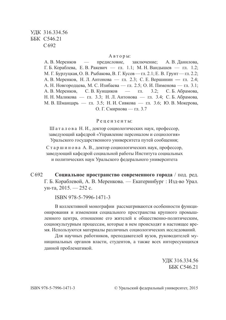 В коллективной монографии рассматриваются особенности функционирования и изменения социального пространства крупного промышленного центра, отношение его жителей к общественно-политическим, социокультурным процессам, которые в нем происходят в настоящее время. Используются материалы различных социологических исследований. Для научных работников, преподавателей вузов, руководителей муниципальных органов власти, студентов, а также всех интересующихся данной проблематикой.