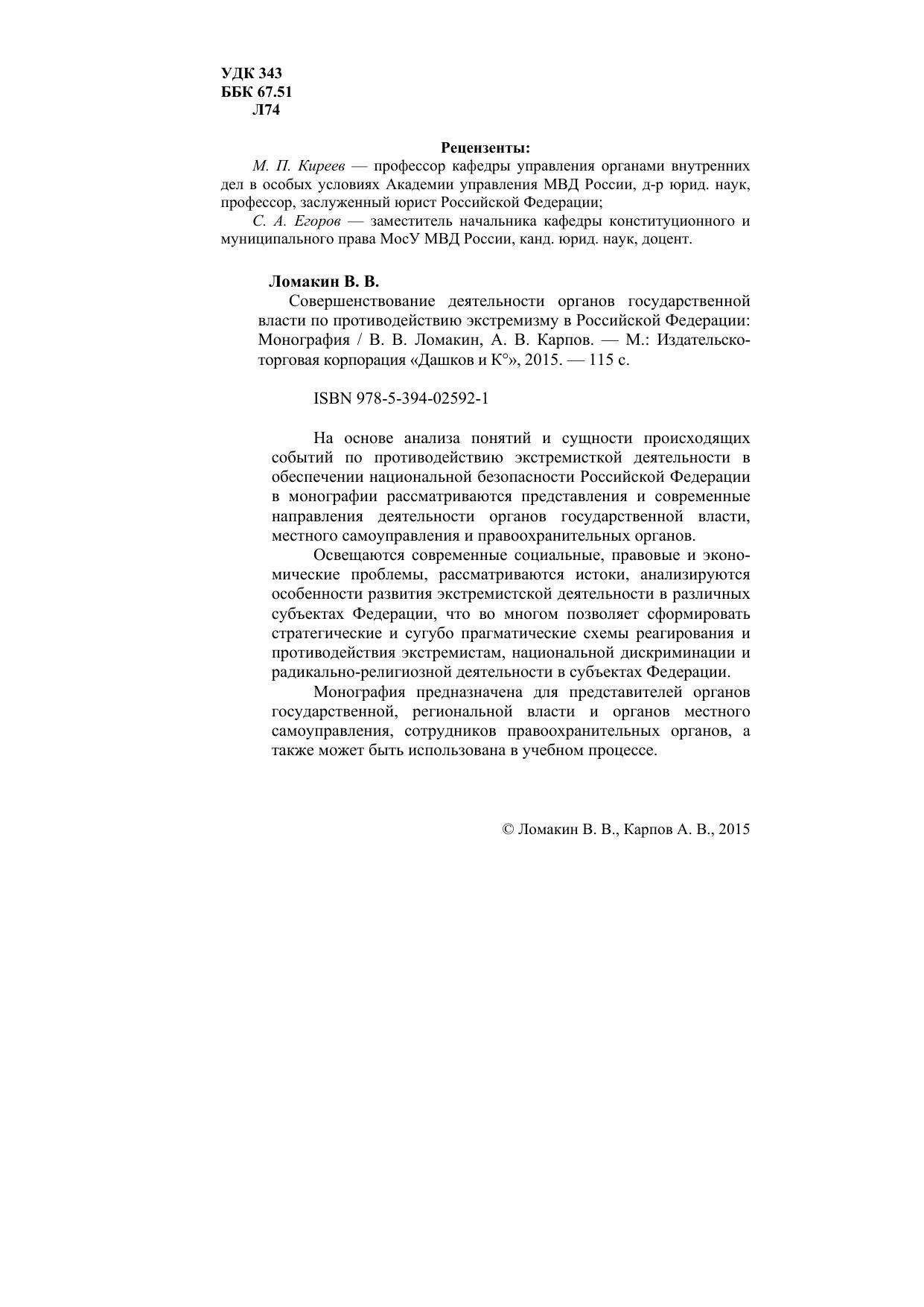 особенности развития экстремистской деятельности в различных субъектах Федерации, что во многом позволяет сформировать стратегические и сугубо прагматические схемы реагирования и противодействия экстремистам, национальной дискриминации и радикально-религиозной деятельности в субъектах Федерации. Монография предназначена для представителей органов государственной, региональной власти и органов местного самоуправления, сотрудников правоохранительных органов, а также может быть использована в учебном процессе.