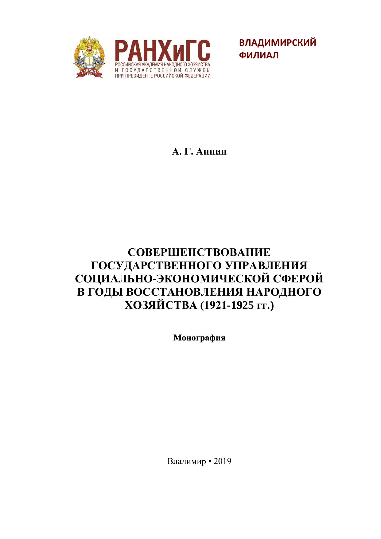 Совершенствование государственного управления социально-экономической сферой в годы восстановления народного хозяйства (1921-1925 гг.)