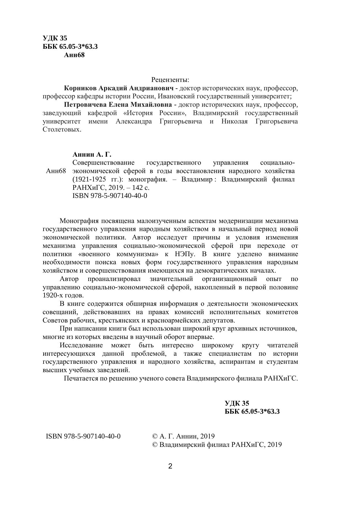 Монография посвящена малоизученным аспектам модернизации механизма государственного управления народным хозяйством в начальный период новой экономической политики. Автор исследует причины и условия изменения механизма управления социально-экономической сферой при переходе от политики «военного коммунизма» к НЭПу. В книге уделено внимание необходимости поиска новых форм государственного управления народным хозяйством и совершенствования имеющихся на демократических началах. Автор проанализировал значительный организационный опыт по управлению социально-экономической сферой, накопленный в первой половине 1920-х годов. В книге содержится обширная информация о деятельности экономических совещаний, действовавших на правах комиссий исполнительных комитетов Советов рабочих, крестьянских и красноармейских депутатов. При написании книги был использован широкий круг архивных источников, многие из которых введены в научный оборот впервые.Исследование может быть интересно широкому кругу читателей интересующихся данной проблемой, а также специалистам по истории государственного управления и народного хозяйства, аспирантам и студентам высших учебных заведений. Печатается по решению ученого совета Владимирского филиала РАНХиГС.