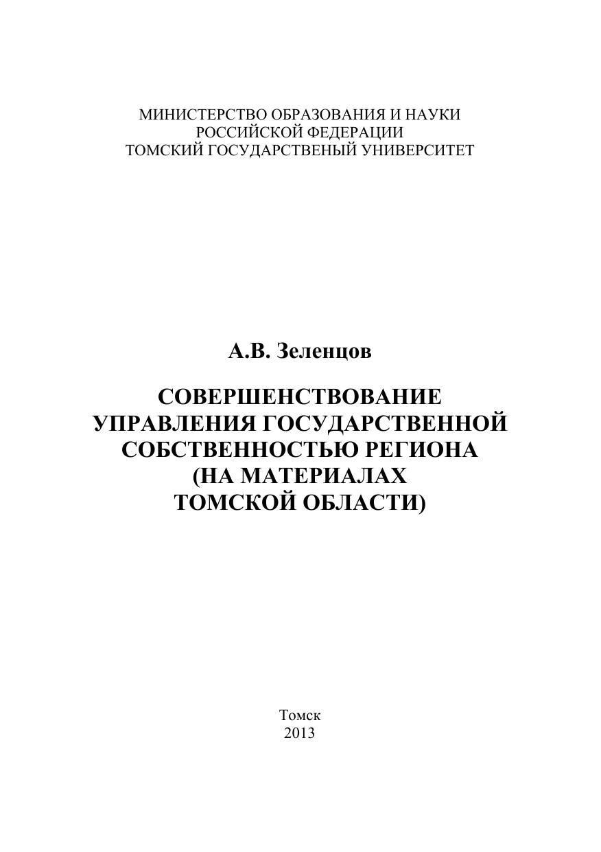 Совершенствование управления государственной собственностью региона (на материалах Томской области)