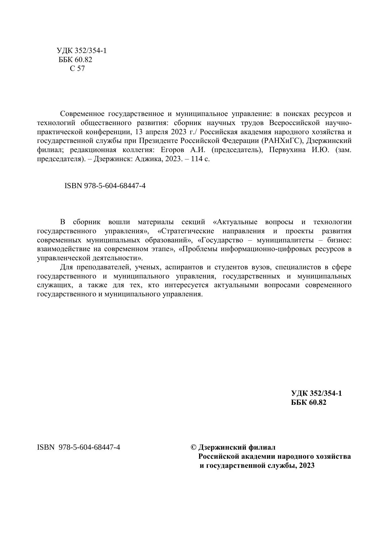 Современное государственное и муниципальное управление: в поисках ресурсов и технологий общественного развития: сборник научных трудов Всероссийской научно-практической конференции, 13 апреля 2023 г.