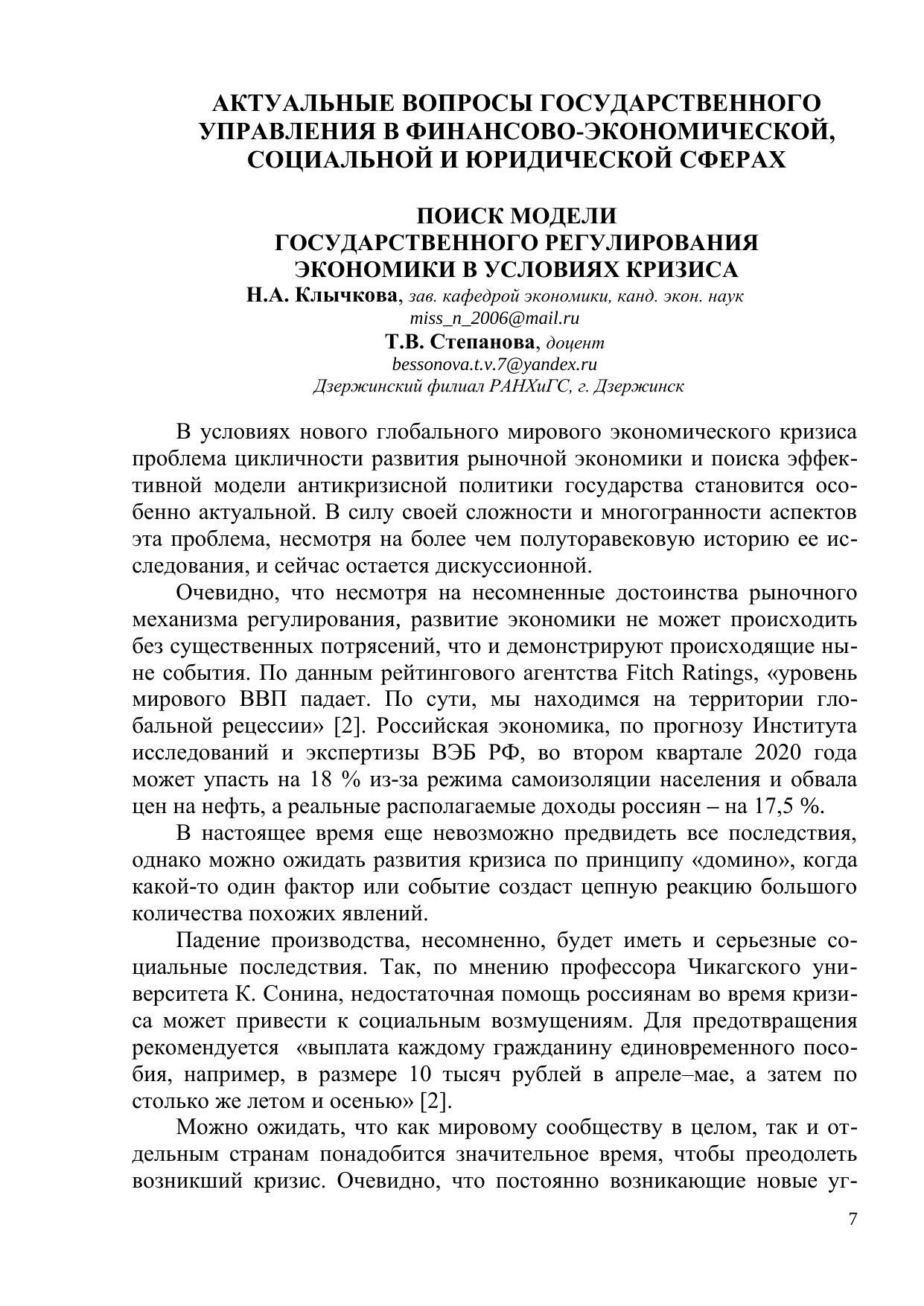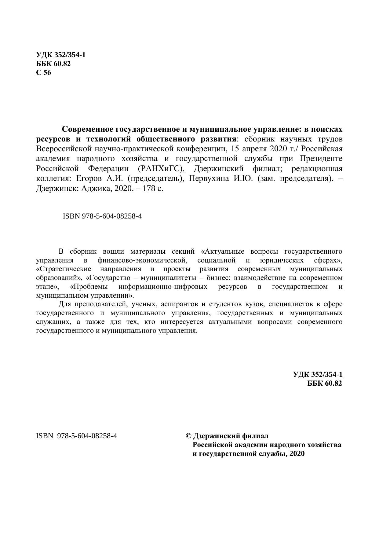 Современное государственное и муниципальное управление: в поисках ресурсов и технологий общественного развития: сборник научных трудов Всероссийской научно-практической конференции, 15 апреля 2020 г.