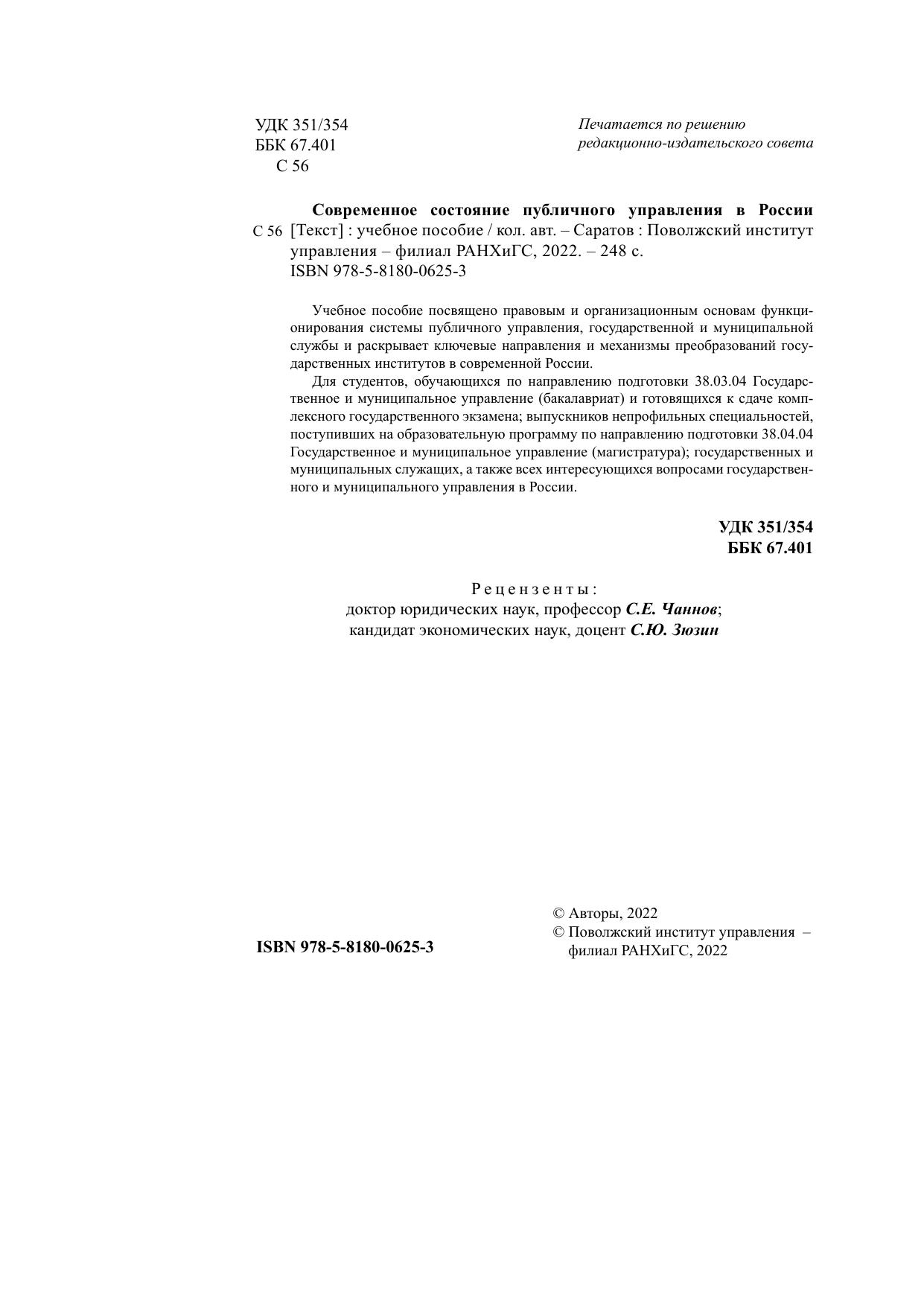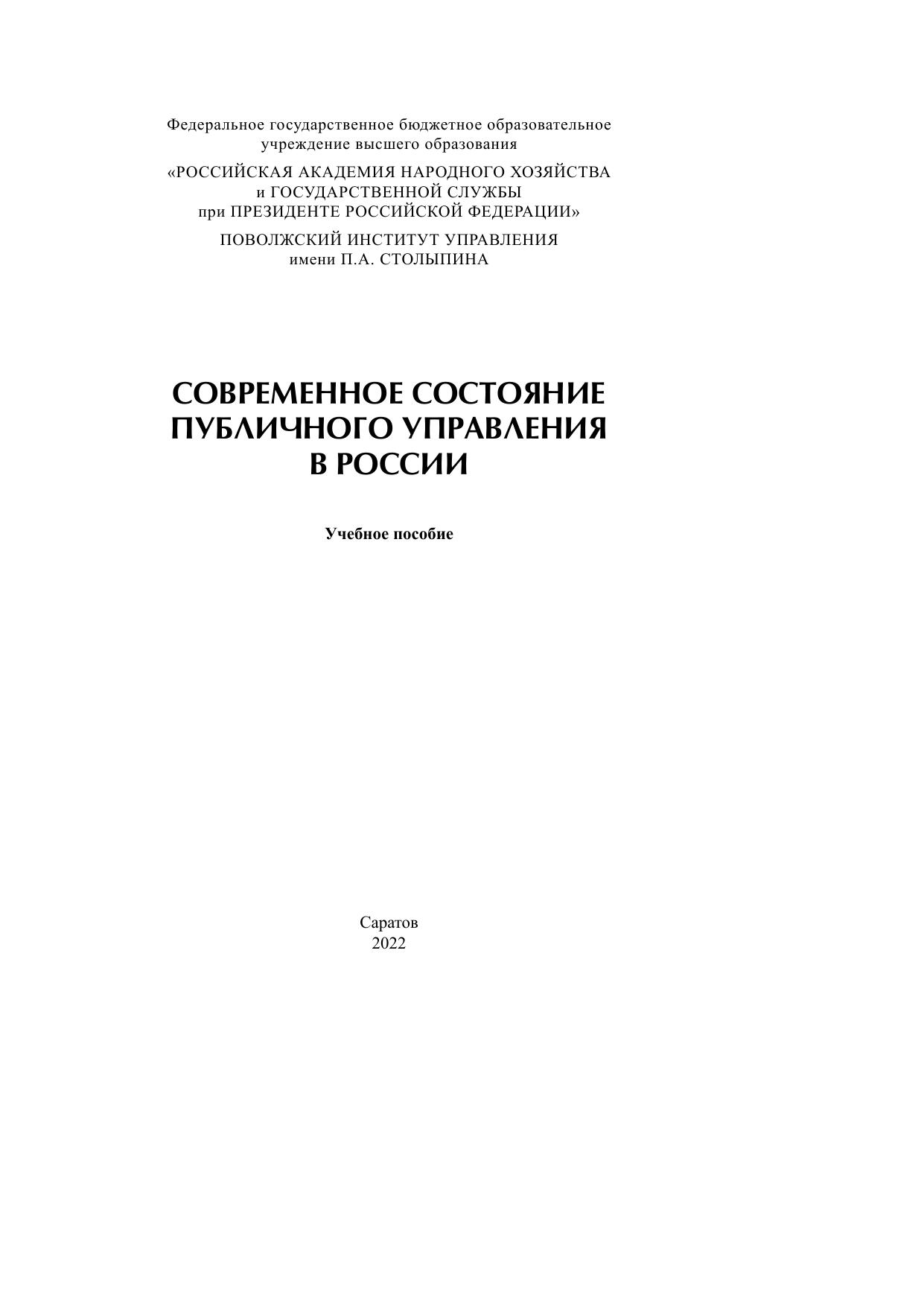 Учебное пособие посвящено правовым и организационным основам функционирования системы публичного управления, государственной и муниципальной службы и раскрывает ключевые направления и механизмы преобразований государственных институтов в современной России. Для студентов, обучающихся по направлению подготовки 38.03.04 Государственное и муниципальное управление (бакалавриат) и готовящихся к сдаче комплексного государственного экзамена; выпускников непрофильных специальностей, поступивших на образовательную программу по направлению подготовки 38.04.04 Государственное и муниципальное управление (магистратура); государственных и муниципальных служащих, а также всех интересующихся вопросами государственного и муниципального управления в России.