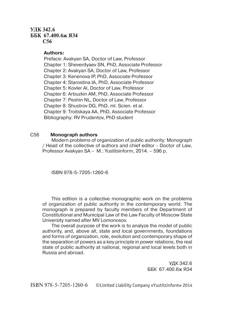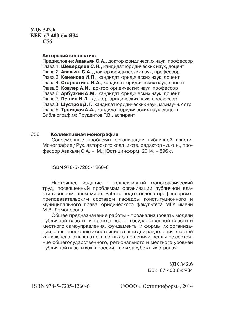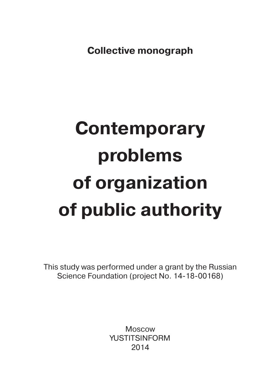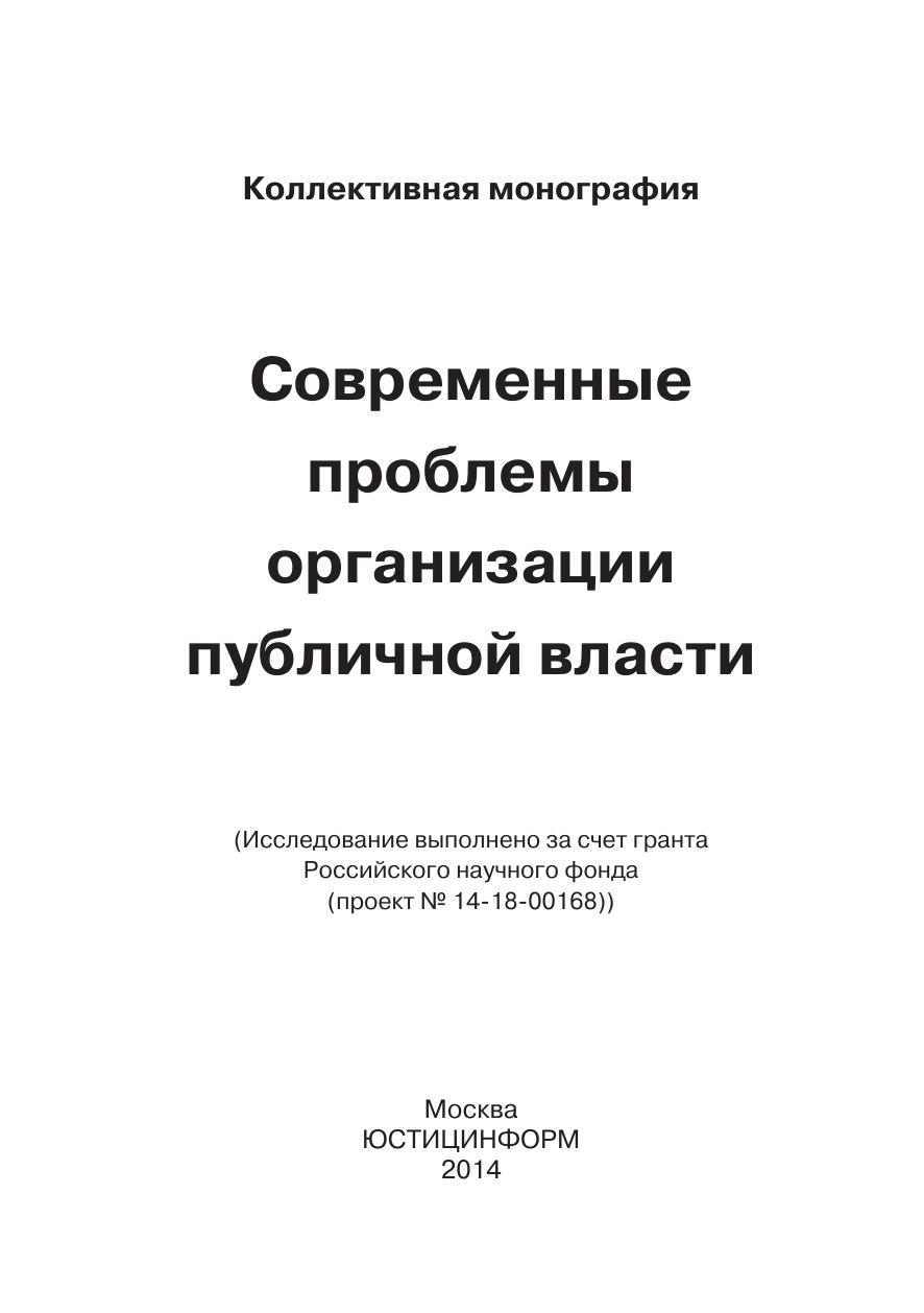 Современные проблемы организации публичной власти. Монография