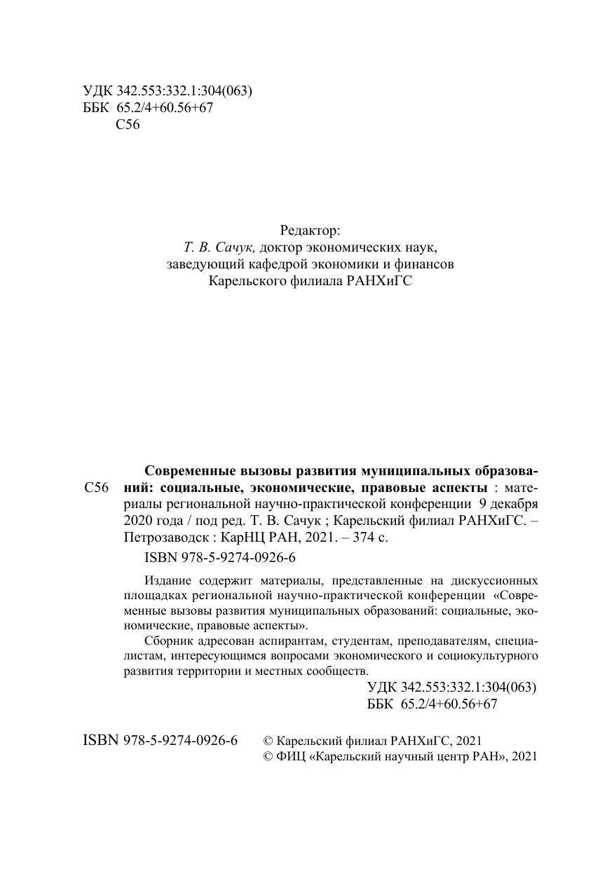 Современные вызовы развития муниципальных образований: социальные, экономические, правовые аспекты : материалы региональной научно-практической конференции 9 декабря 2020 года