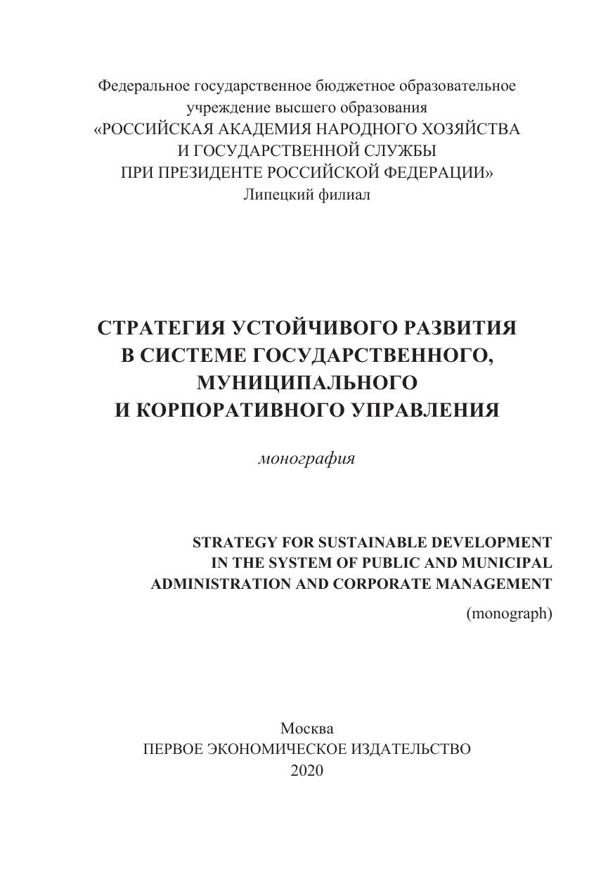 Стратегия устойчивого развития в системе государственного, муниципального и корпоративного управления