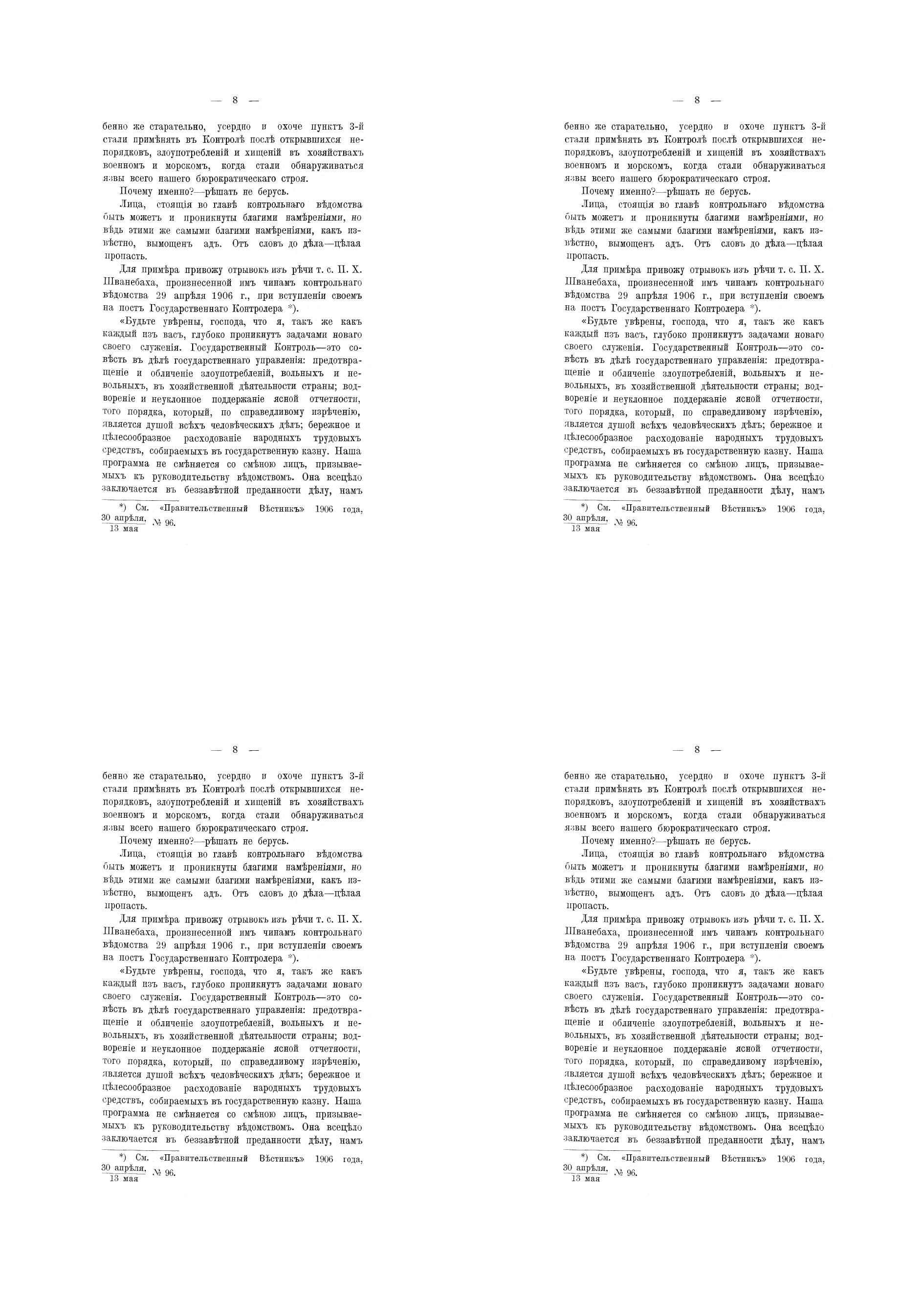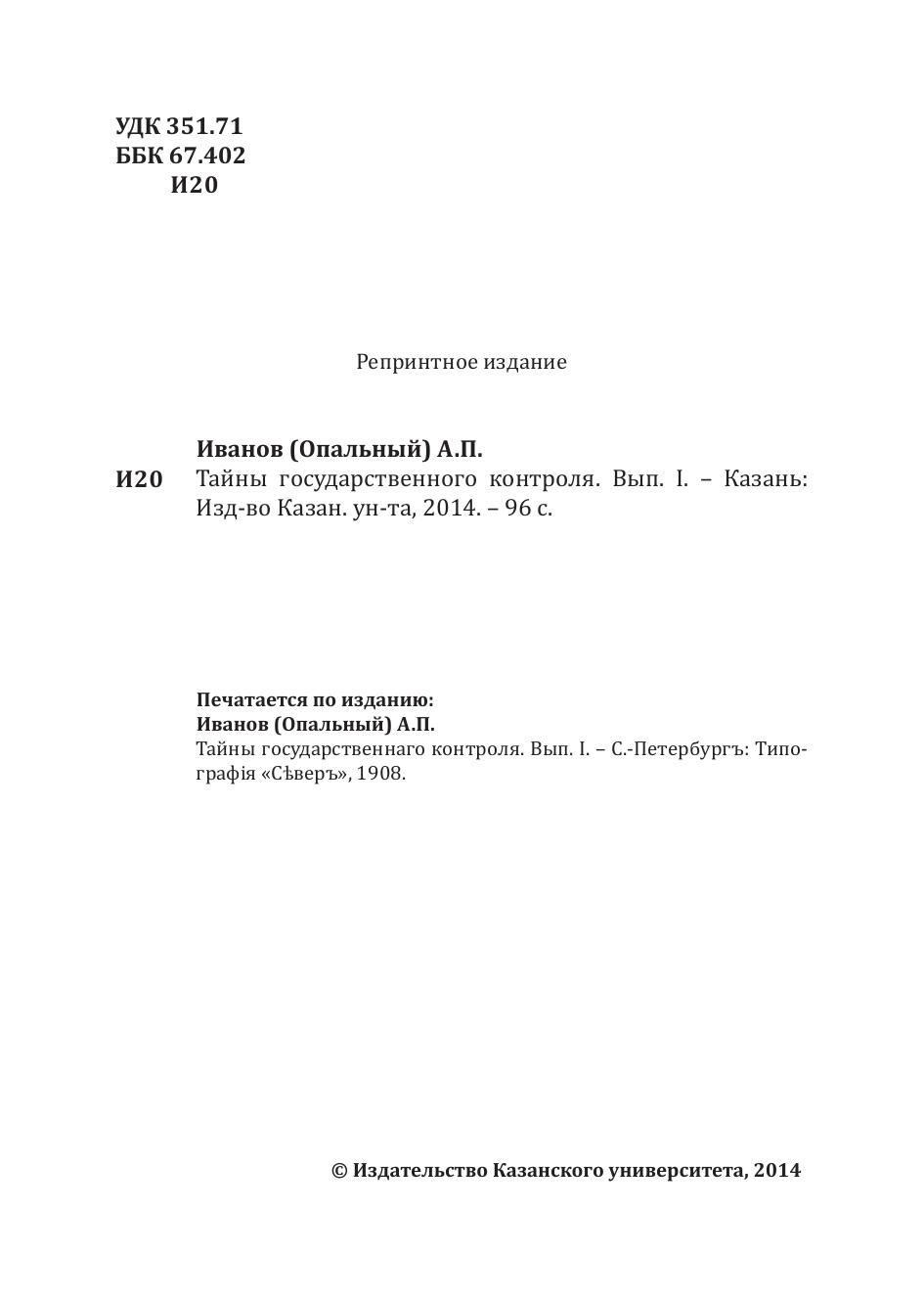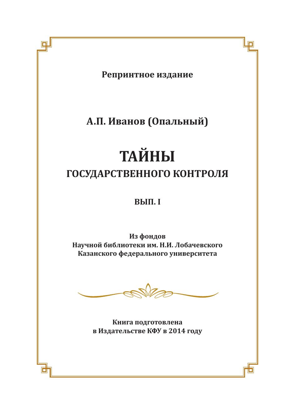 По изданию: Иванов (Опальный) А.П. Тайны государственнаго контроля. Вып. I. – С.-Петербургъ: Типографiя «С?веръ», 1908.