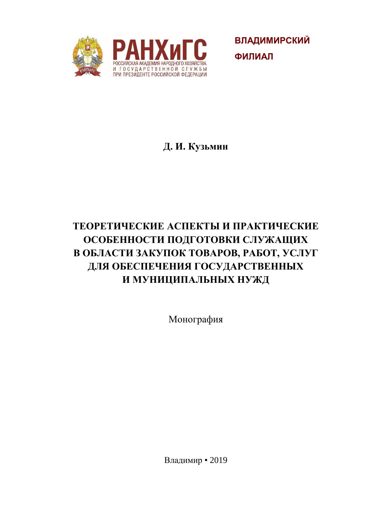 Теоретические аспекты и практические особенности подготовки служащих в области закупок товаров, работ, услуг для обеспечения государственных и муниципальных нужд
