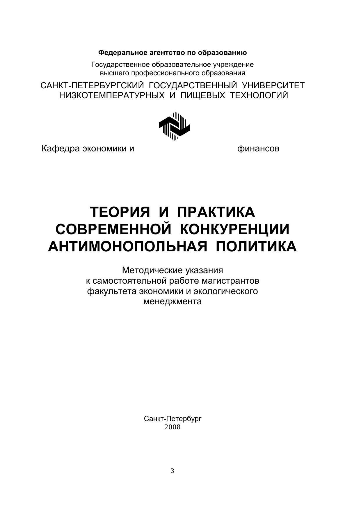 Теория и практика современной конкуренции. Антимонопольная политика: Метод. указания к самостоятельной работе магистрантов факультета экономики и экологического менеджмента