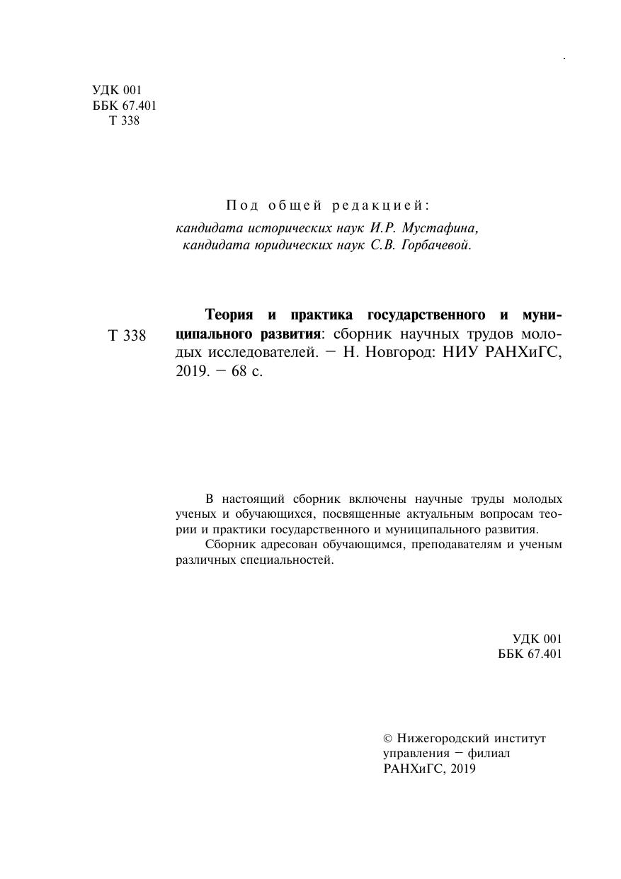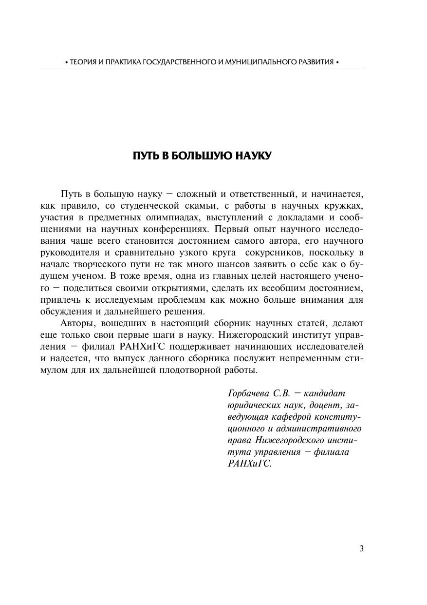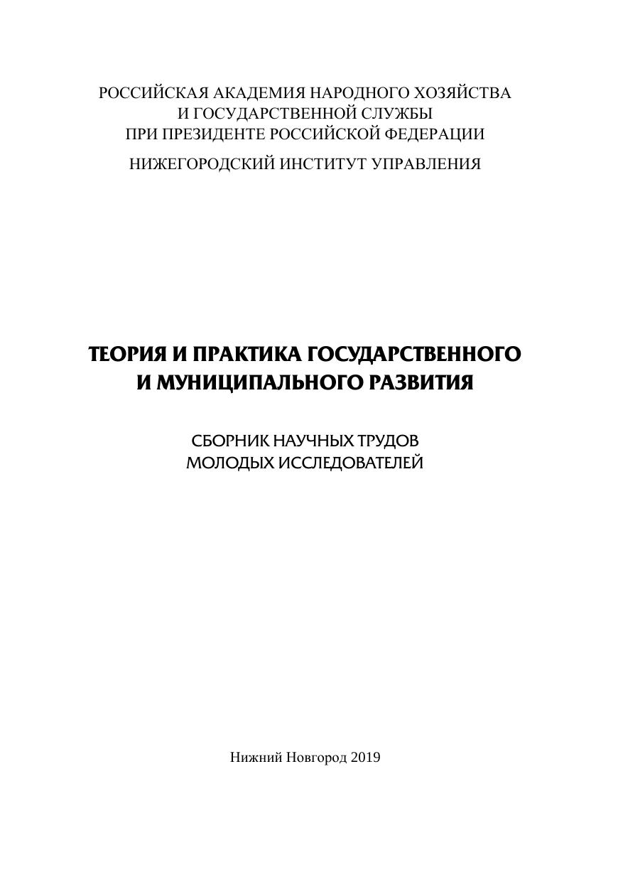 Теория и практика государственного и муниципального развития: сборник научных трудов моло дых исследователей