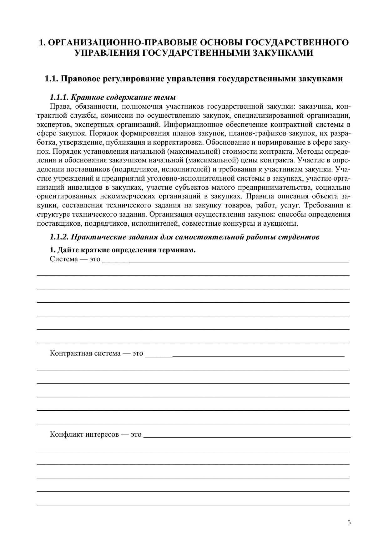Управление закупками для государственных нужд: рабочая тетрадь