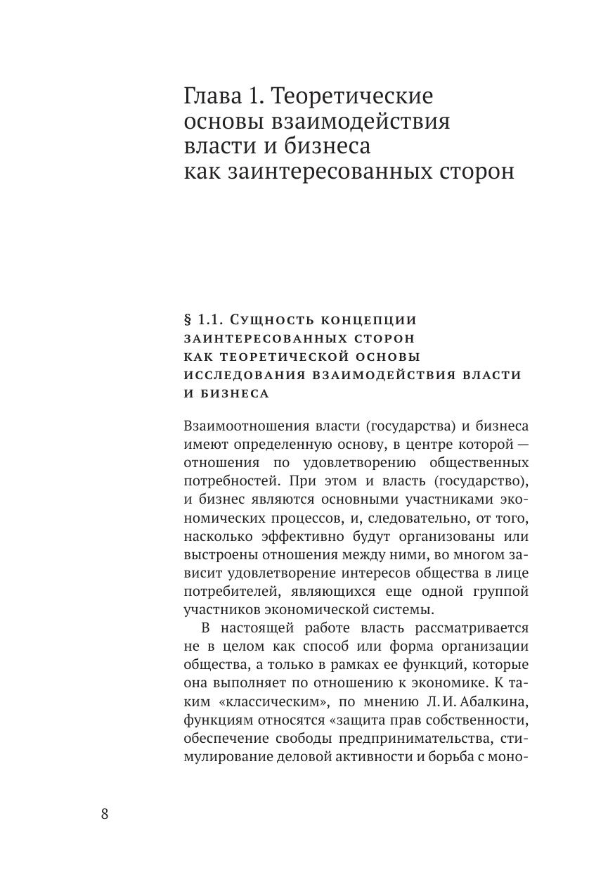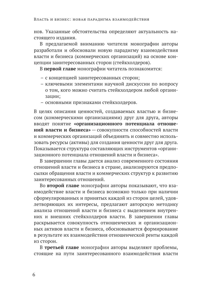 Монография посвящена поиску новых, обусловленных современными трендами путей развития взаимодействия власти и бизнеса. Предложены методика исследования данных отношений на основе концепции заинтересованных сторон (стейкхолдеров), механизмы и инструменты формирования и организации взаимодействия в целях социально-экономического развития территорий. Для преподавателей вузов, бакалавров и магистрантов, руководителей всех уровней государственного и муниципального управления, бизнесструктур. Публикуется в авторской редакции.