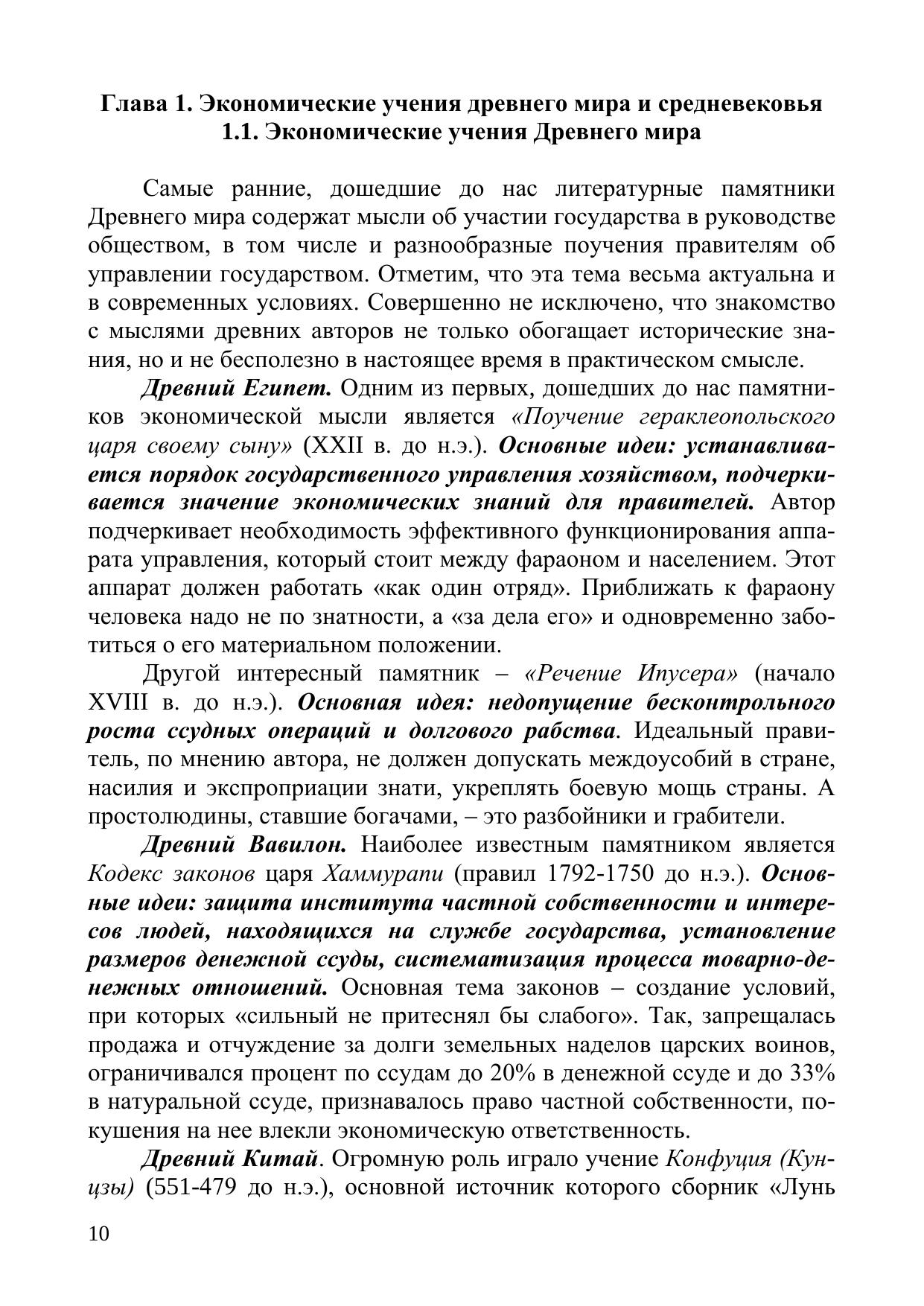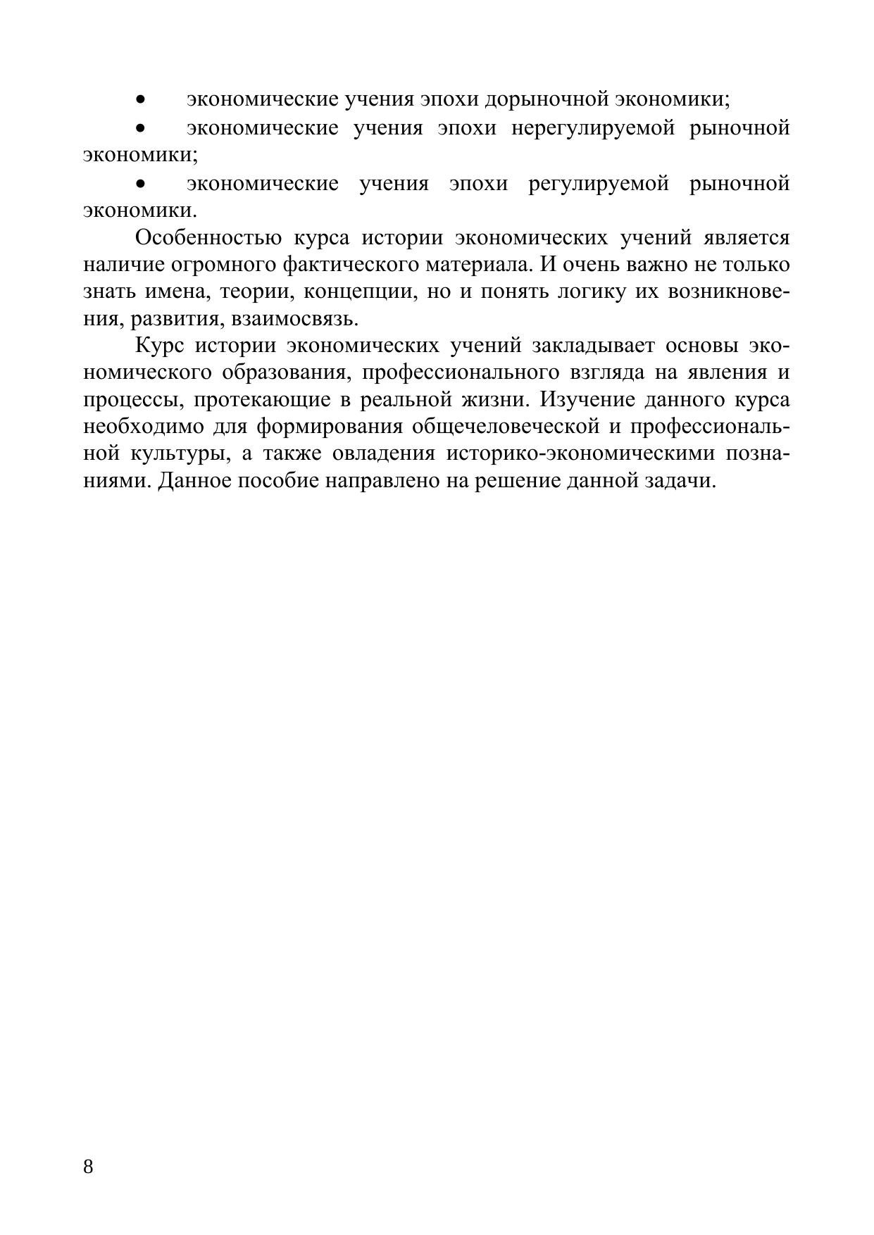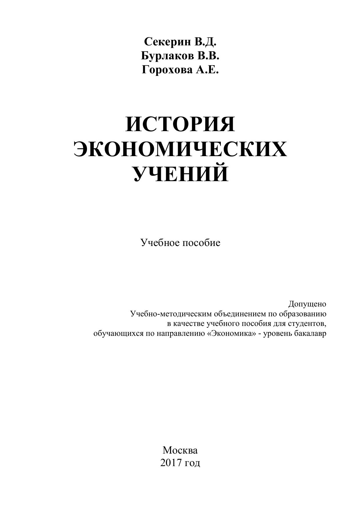 Учебное пособие включает в себя краткий курс лекций по следующим разделам дисциплины «История экономических учений» – экономическая мысль эпохи дорыночной экономики, эпохи нерегулируемой рыночной экономики, эпохи регулируемой рыночной экономики, тесты для контроля знаний студентов и список рекомендуемой литературы. Учебное пособие предназначено для студентов, обучающихся по направлению подготовки 38.03.01 – «Экономика» для всех форм обучения.