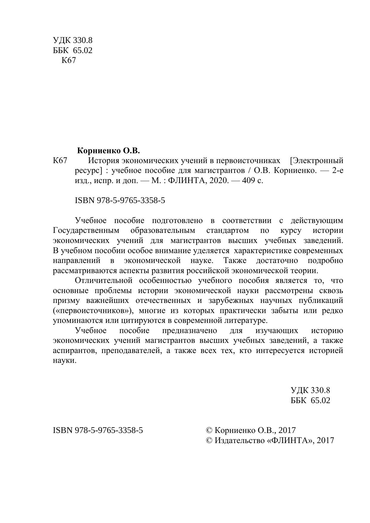 Учебное пособие подготовлено в соответствии с действующим Государственным образовательным стандартом по курсу истории экономических учений для магистрантов высших учебных заведений. В учебном пособии особое внимание уделяется характеристике современных направлений в экономической науке. Также достаточно подробно рассматриваются аспекты развития российской экономической теории.