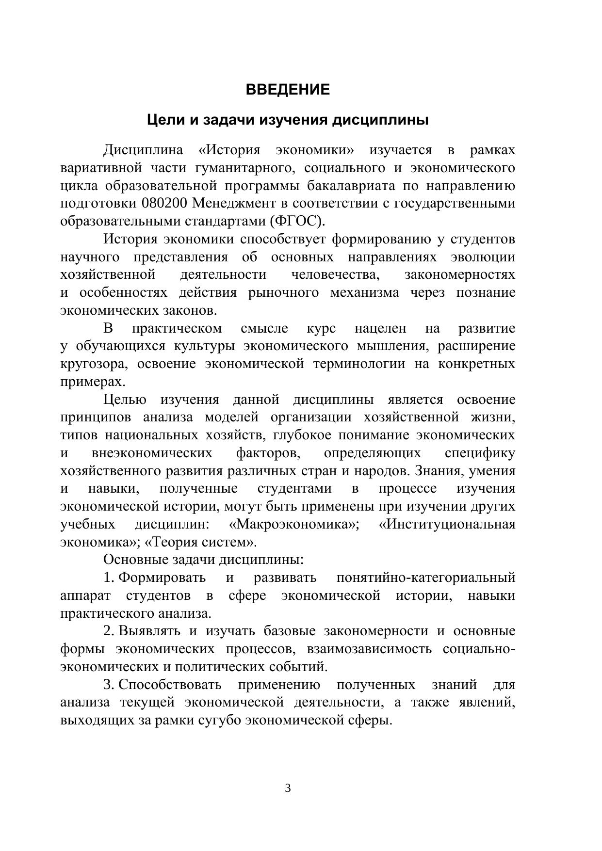 Представлена программа дисциплины «История экономики» с учетом требований к компетентностной модели выпускника, а также фонд оценочных средств (задания, темы контрольных работ, вопросы к экзамену), методические указания к выполнению контрольных работ. Пособие предназначено для студентов очной и заочной форм обучения по направлению 080200 Менеджмент.