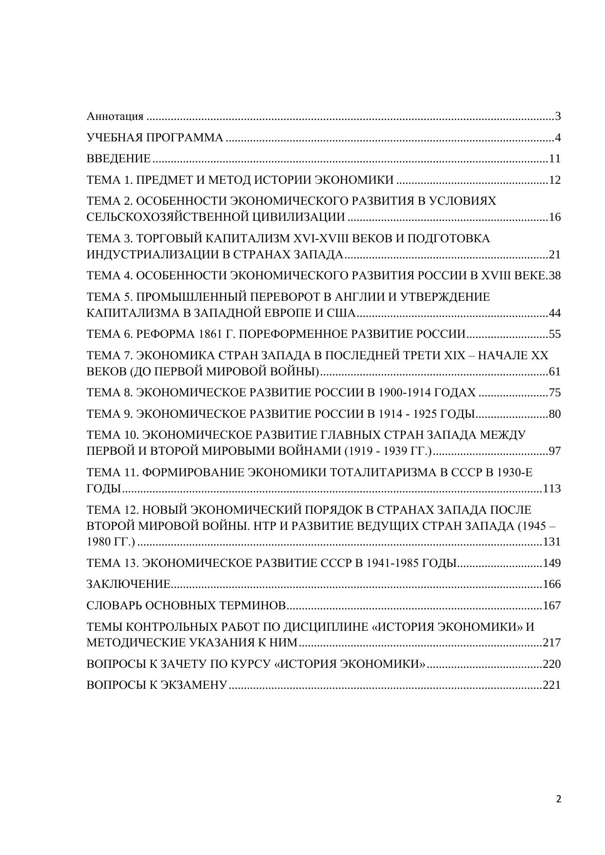 Данное учебное пособие по дисциплине «История экономики» представляет собой учебно-методический комплекс, включающий: учебную программу, планы семинарских занятий, темы рефератов и методические указания по их написанию, опорный конспект лекций по темам семинарских занятий, тесты и контрольные вопросы по курсу. Автор изменил подход к написанию контрольных работ для заочников, представив новые методические рекомендации по их написанию. Электронное учебное пособие для дистанционного обучения