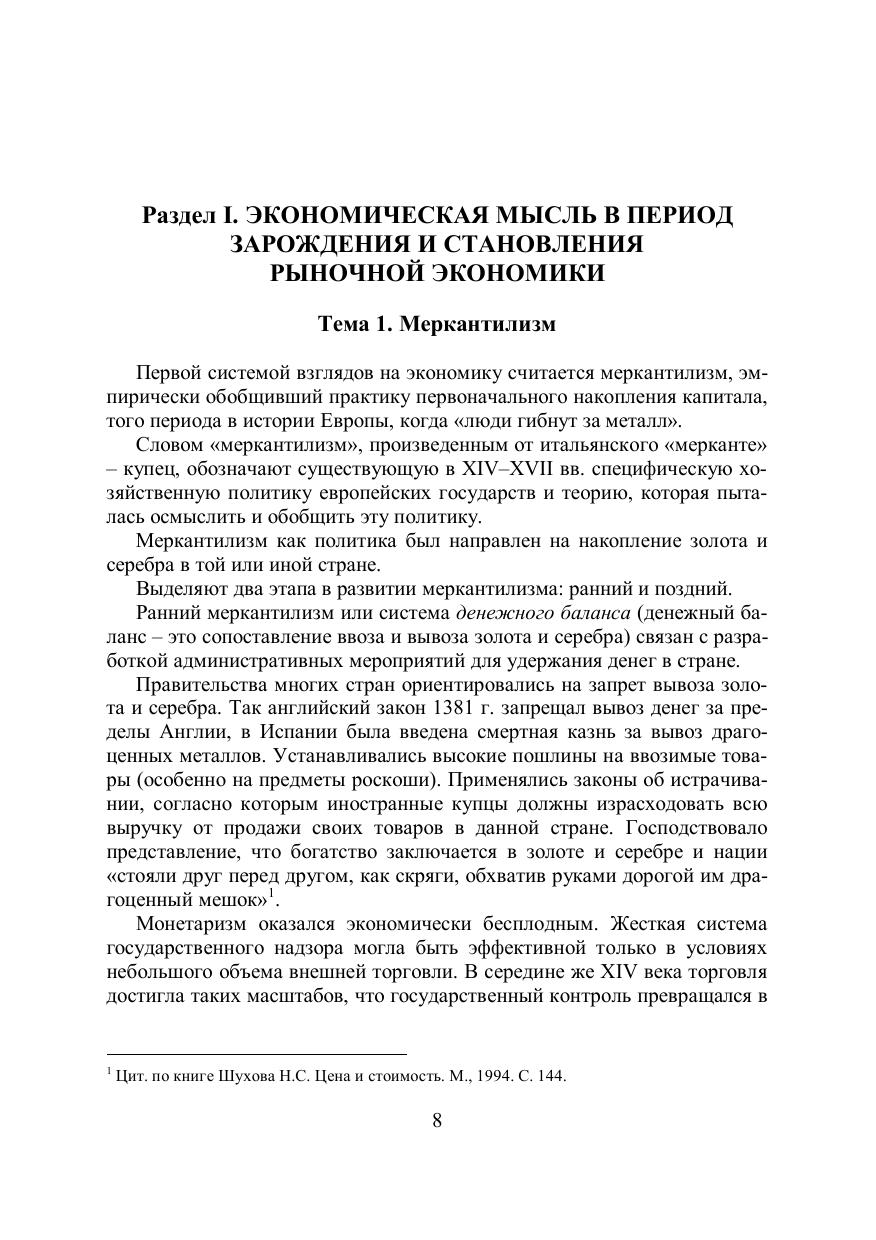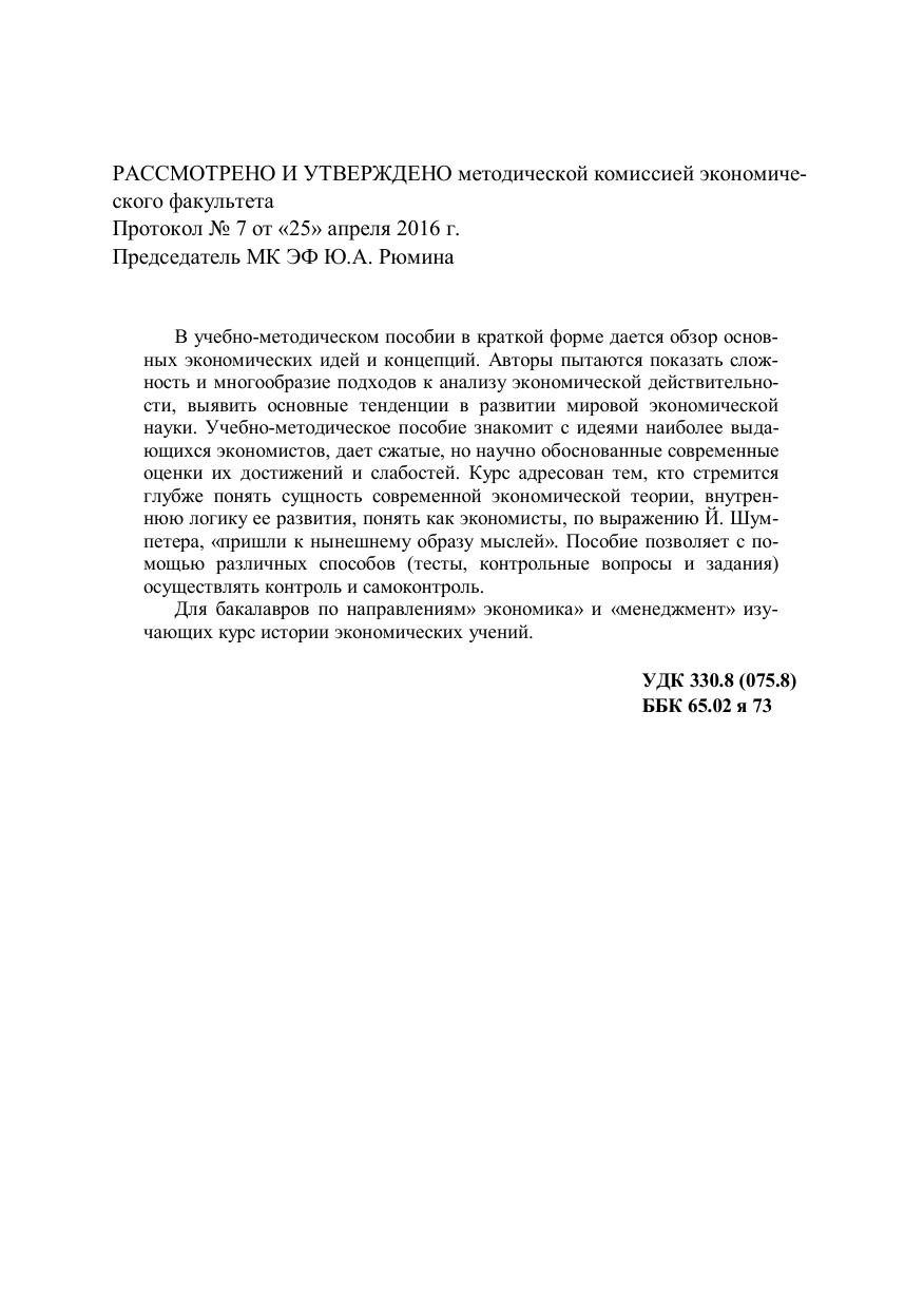 В учебно-методическом пособии в краткой форме дается обзор основных экономических идей и концепций. Авторы пытаются показать сложность и многообразие подходов к анализу экономической действительности, выявить основные тенденции в развитии мировой экономической науки. Учебно-методическое пособие знакомит с идеями наиболее выдающихся экономистов, дает сжатые, но научно обоснованные современные оценки их достижений и слабостей. Курс адресован тем, кто стремится глубже понять сущность современной экономической теории, внутреннюю логику ее развития, понять как экономисты, по выражению Й. Шумпетера, «пришли к нынешнему образу мыслей». Пособие позволяет с помощью различных способов (тесты, контрольные вопросы и задания) осуществлять контроль и самоконтроль. Для бакалавров по направлениям» экономика» и «менеджмент» изучающих курс истории экономических учений.