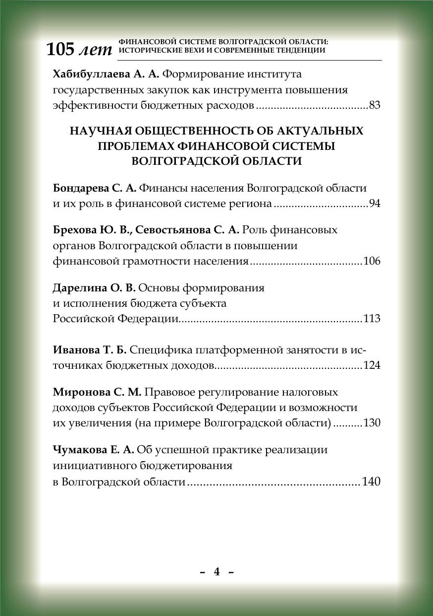В сборнике представлены статьи специалистов-практиков и представителей научной общественно-сти, участвовавших в работе региональной конферен-ции «105 лет финансовой системе Волгоградской обла-сти: исторические вехи и современные тенденции», проведенной комитетом финансов Волгоградской об-ласти при поддержке Волгоградского института управления – филиала Российской академии народ-ного хозяйства и государственной службы при Прези-денте Российской Федерации. В статьях рассмотрены история финансовой системы Волгоградской области и современные тенденции различных направлений её развития. Сборник адресуется всем, кто интересуется вопросами становления и развития региональных рос-сийских финансовых систем в целом, и спецификой Волгоградской области в частности. Работы печата-ются в авторской редакции.