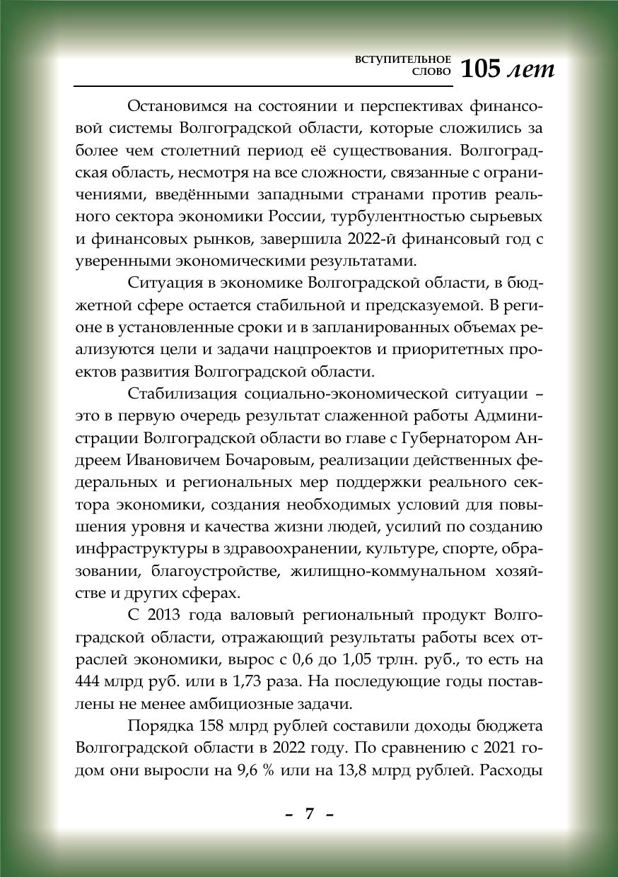 105 лет финансовой системе Волгоградской области: исторические вехи и современные тенденции