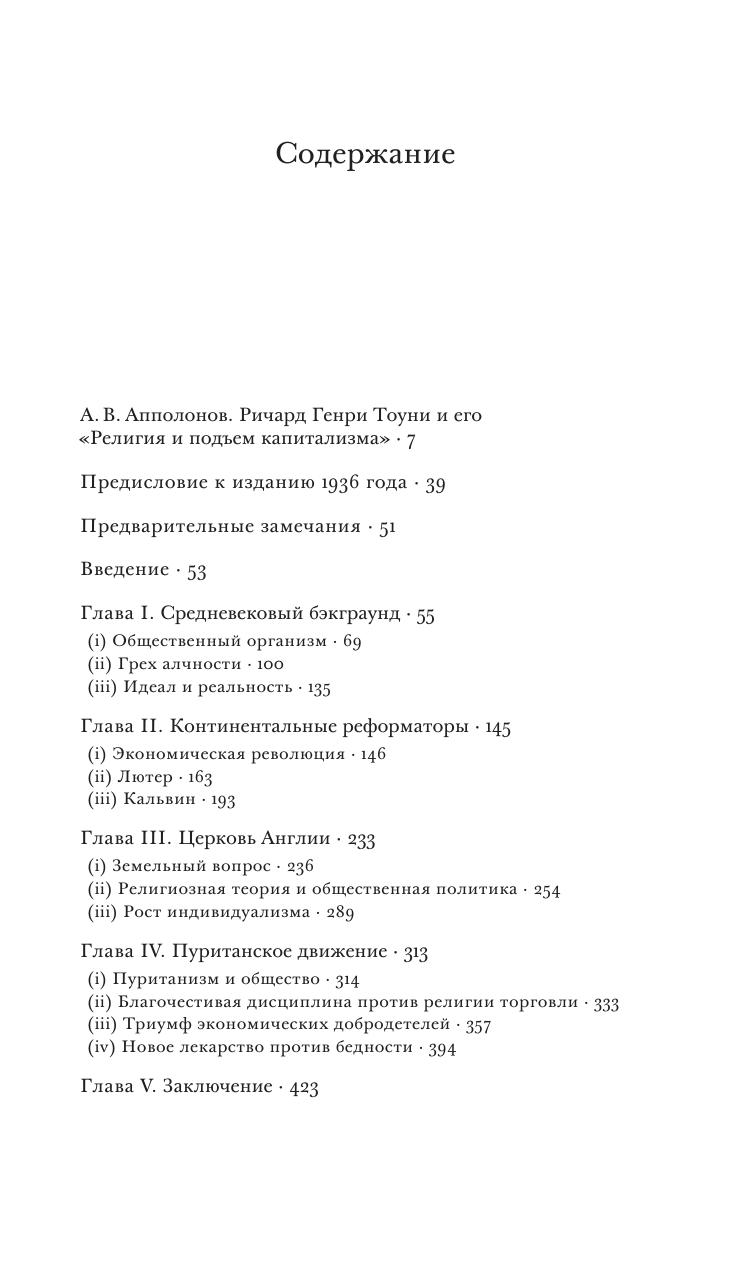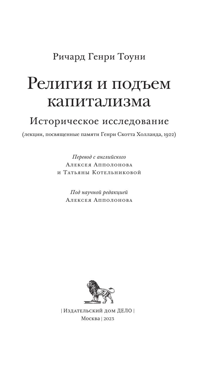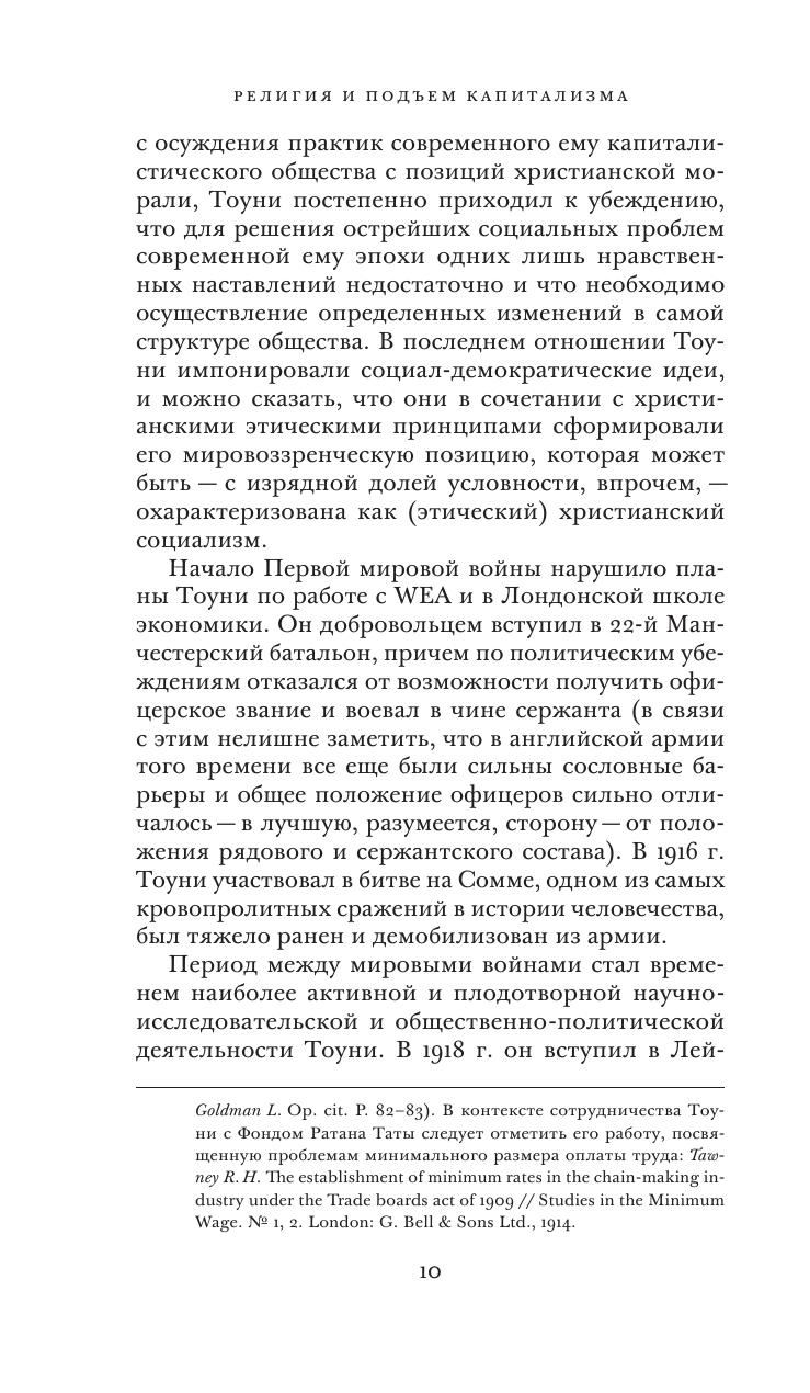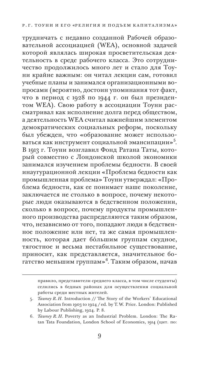 Ричард Генри Тоуни (1880–1962) — выдающийся представитель английской политэкономической мысли, историк и общественный деятель, чьи идеи оказали значительное влияние на государственное строительство в послевоенной Великобритании. Его «Религия и подъем капитализма» — фундаментальный труд по истории экономики, посвященный сложному взаимодействию между религиозными догмами и социально- экономическими практиками в западноевропейских странах (прежде всего в Англии) периода XVI–XVIII вв. Опираясь на богатый эмпирический материал, Тоуни показывает, какие изменения претерпевала религиозная мысль по мере развития капиталистических отношений и как, в свою очередь, эти отношения получали легитимацию и оправдание со стороны христианской теологии. От исследования исторических материй автор переходит к анализу нравственных основ современного ему западного общества, обращая особое внимание на трагический разрыв между этическими нормами социальной ответственности и доминирующей экономической практикой. Как представляется, эти размышления Ричарда Генри Тоуни, последовательно отстаивавшего идею гуманизации экономических отношений, имеют большое значение для нашего времени и, вероятно, для будущего.