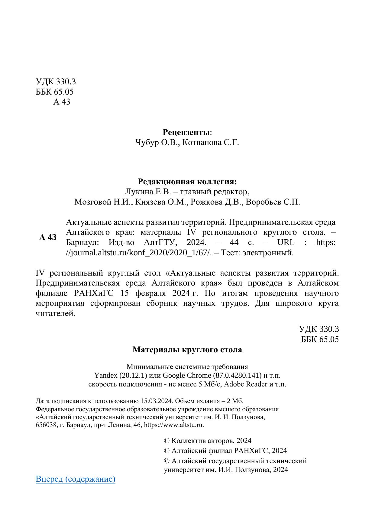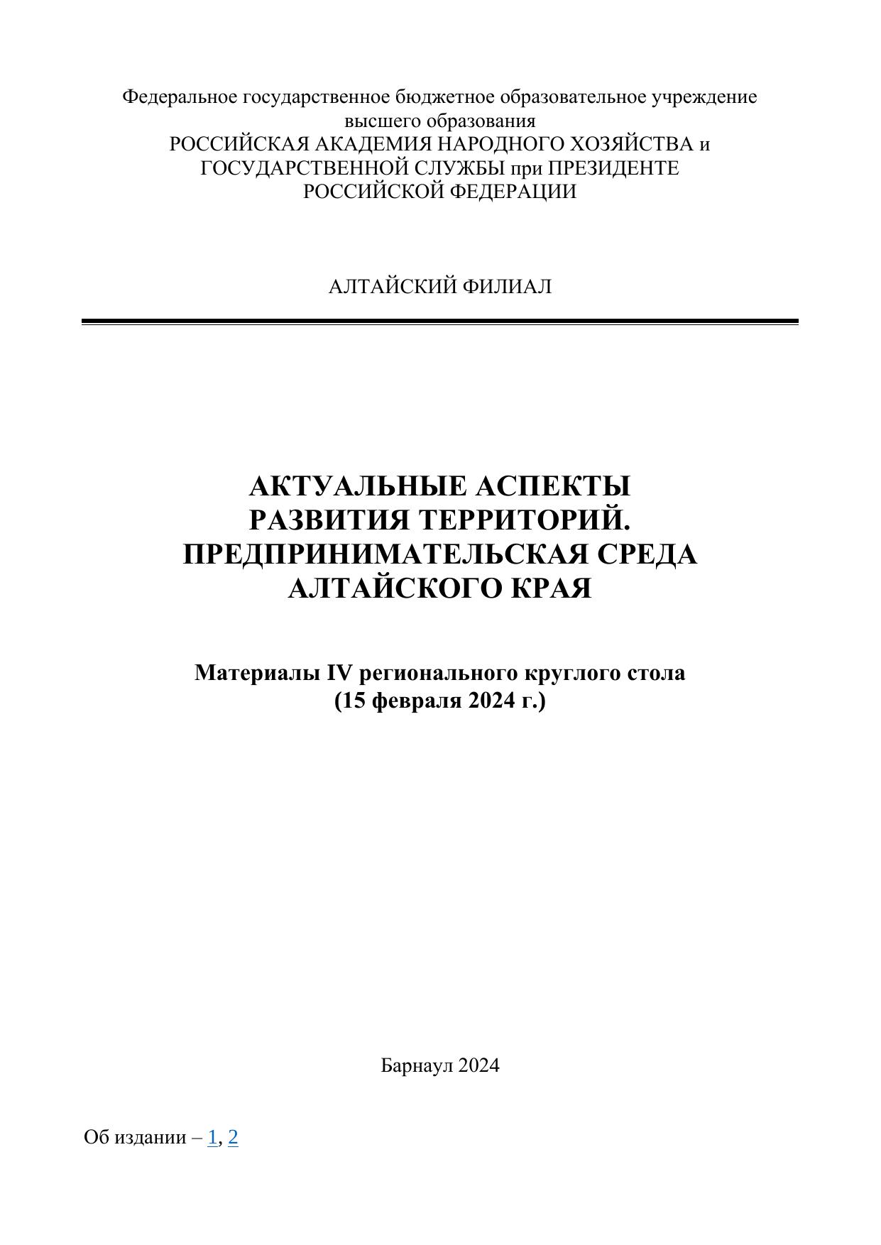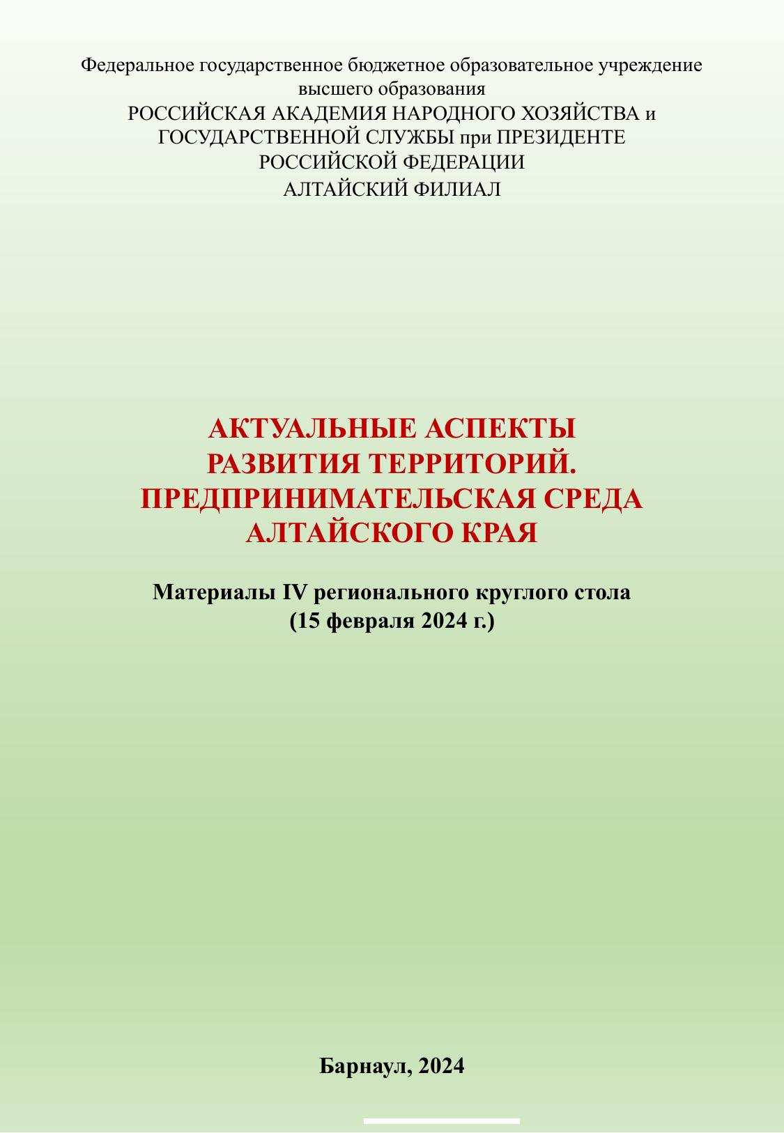 Актуальные аспекты развития территорий. Предпринимательская среда Алтайского края: материалы IV регионального круглого стола