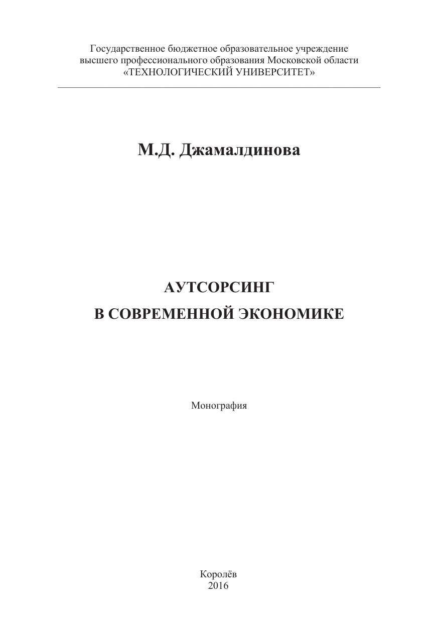 Аутсорсинг в современной экономике: монография