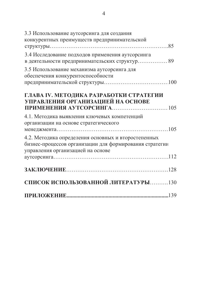 В монографии исследован и обоснован содержательный аспект понятий «ключевые компетенции» и «аутсорсинг» при формировании стратегии управления организацией в современной экономике, представлен комплекс научно-методических разработок, расширяющих представление современной науки о содержании и специфике совершенствования управления предпринимательскими структурами на основе аутсорсинга в условиях рыночных преобразований. Предложена методика выявления ключевых компетенций организации (бизнес-единиц) и формирование конкурентоспособной стратегии управления на основе аутсорсинга.