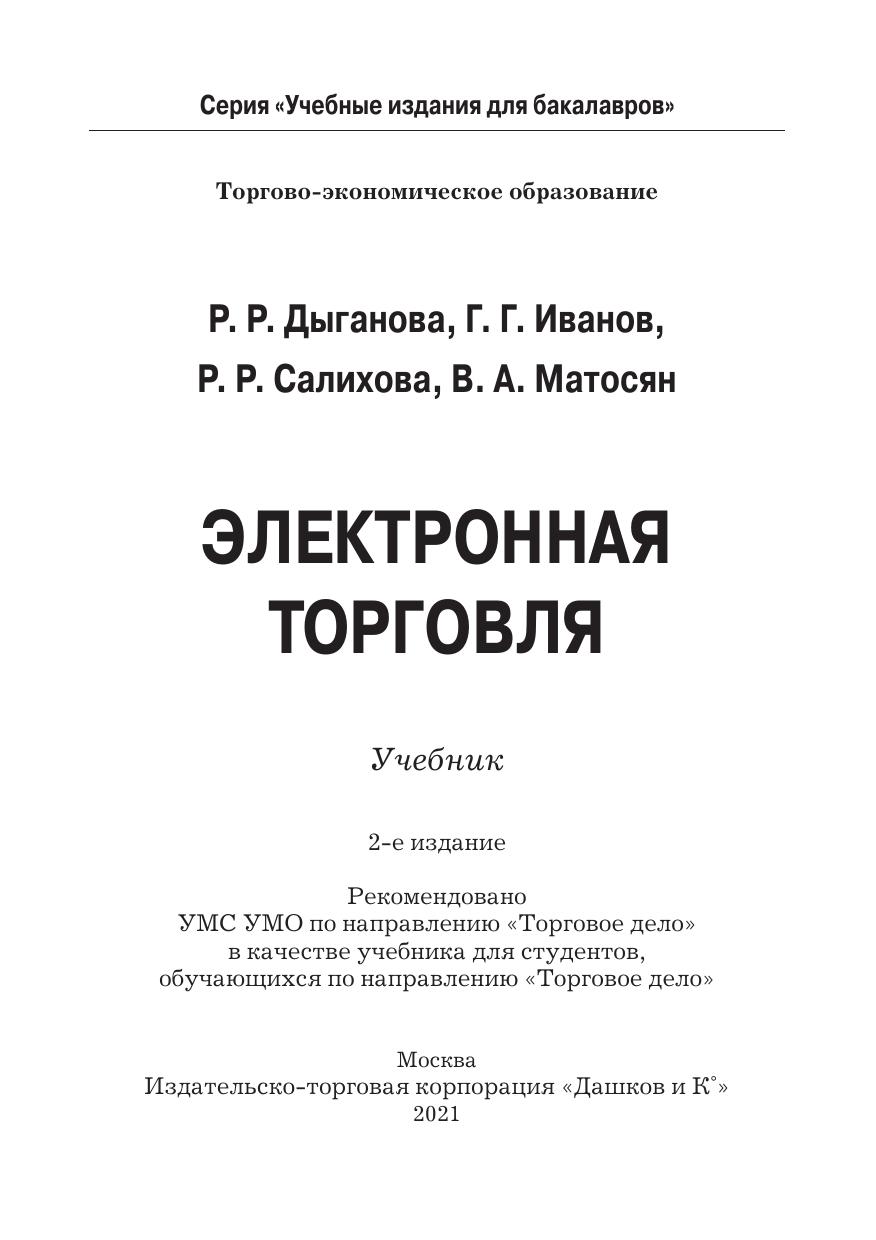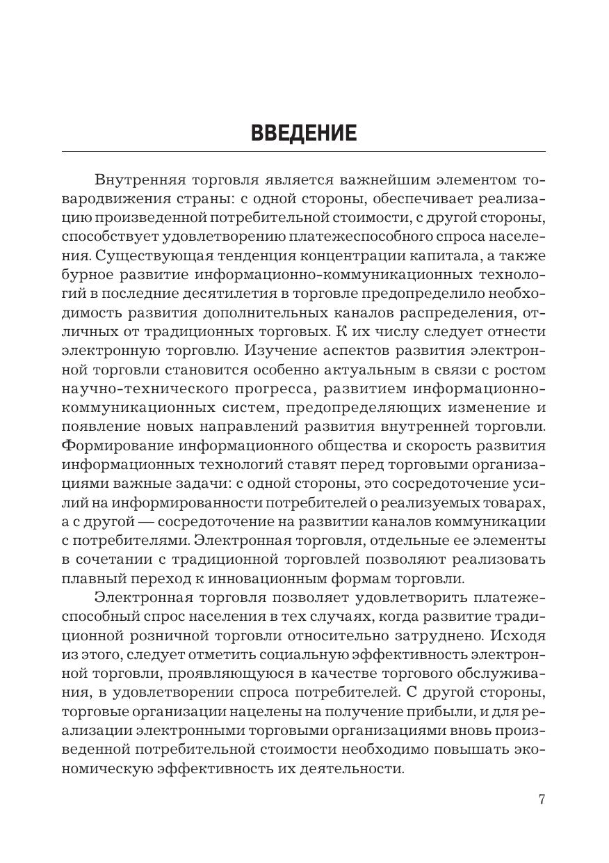 В учебнике рассмотрены и проанализированы основные понятия электронной торговли. В отличии от ранее изданных учебников и учебных пособий по такой же тематике предпринята попытка уменьшить рассмотрение чисто технических проблем развития и функционирования электронной торговли в Российской Федерации в пользу проведения более глубокого анализа экономико-управленческих вопросов.