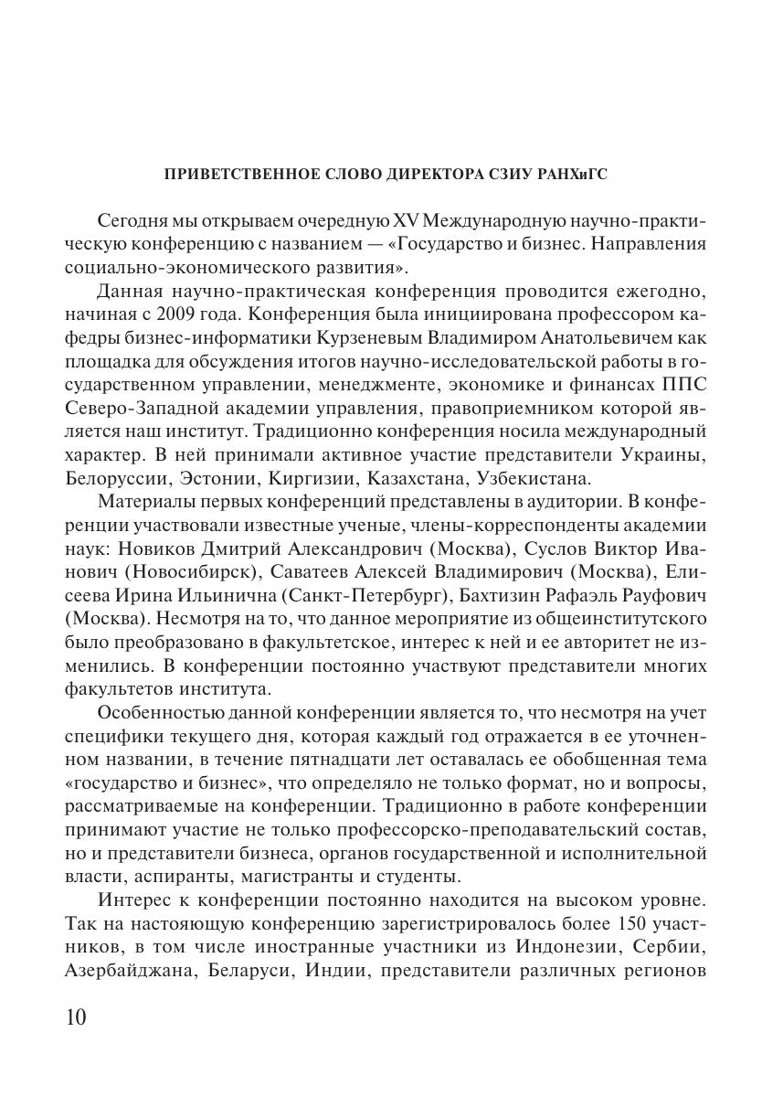 В издании размещены материалы XV Международной научно-практической конференции «Государство и бизнес. Направления социально-экономического развития», которая состоялась в РАНХиГС Санкт-Петербург 26–27 апреля 2023 г. В сборник включены статьи, представленные в организационный комитет конференции и прошедшие апробацию в ходе ее проведения. В него включены статьи, представленные в организационный комитет конференции и прошедшие апробацию в ходе ее проведения. Материалы будут интересны специалистам в области экономики, менеджмента, бизнес-информатики, а также всем тем, кто занимается исследованием проблем взаимодействия государства и бизнеса, вопросами региональной экономики, ее цифровизации с учетом современной ситуации